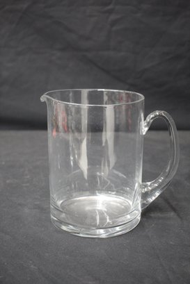 This elegant clear glass pitcher stands 6.5 inches tall and features a simple yet timeless design. With a sturdy handle and a spout for easy pouring, this pitcher is perfect for serving water, juice, iced tea, or other beverages. The minimalist style and crystal-clear glass make it versatile for any table setting or occasion. A wonderful addition to your glassware collection or a practical and stylish serving piece for everyday use.