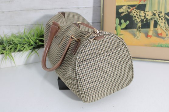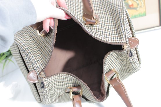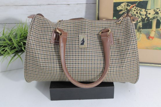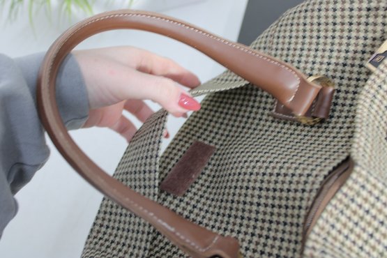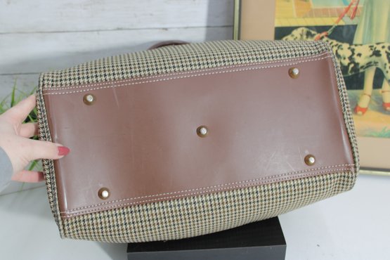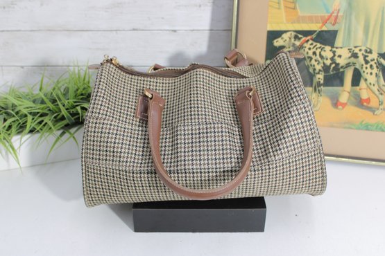 Timeless and versatile, this classic houndstooth satchel handbag features a refined check pattern paired with rich brown leather trim for a polished, sophisticated look. Its structured shape and generous size make it ideal for everyday use, work, or short trips.