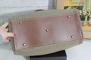 The bag includes dual top zip closures for secure storage, sturdy rolled handles for comfortable carrying, and a reinforced leather base with metal feet for added durability. The spacious interior offers plenty of room for essentials while maintaining a clean, tailored silhouette.