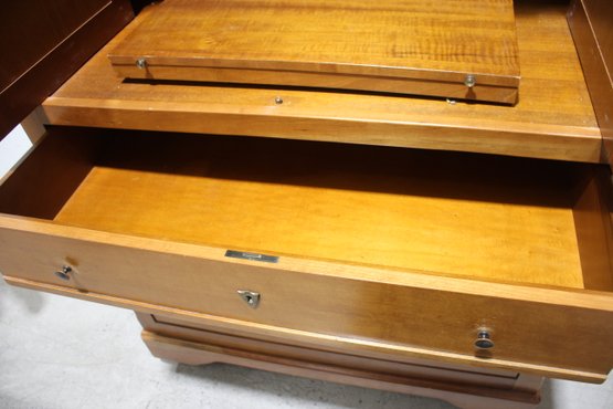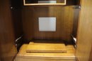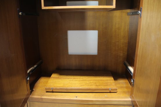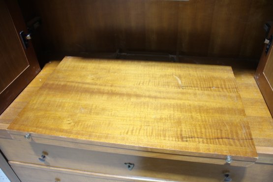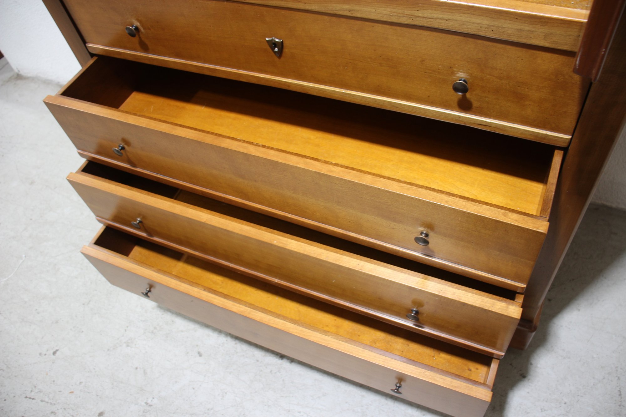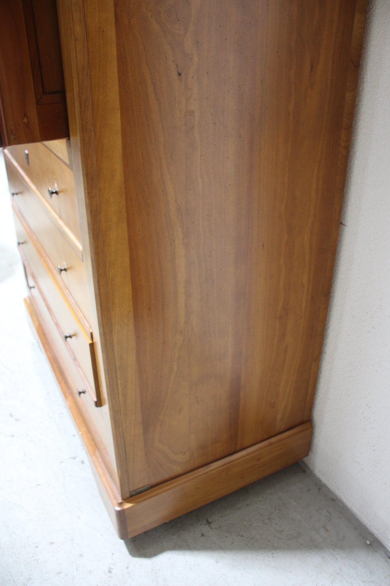 This classic wooden armoire is a versatile and stylish storage solution, featuring a spacious cabinet with paneled double doors and four deep drawers for organization. Crafted from solid wood with a warm finish, this piece blends functionality with timeless elegance.