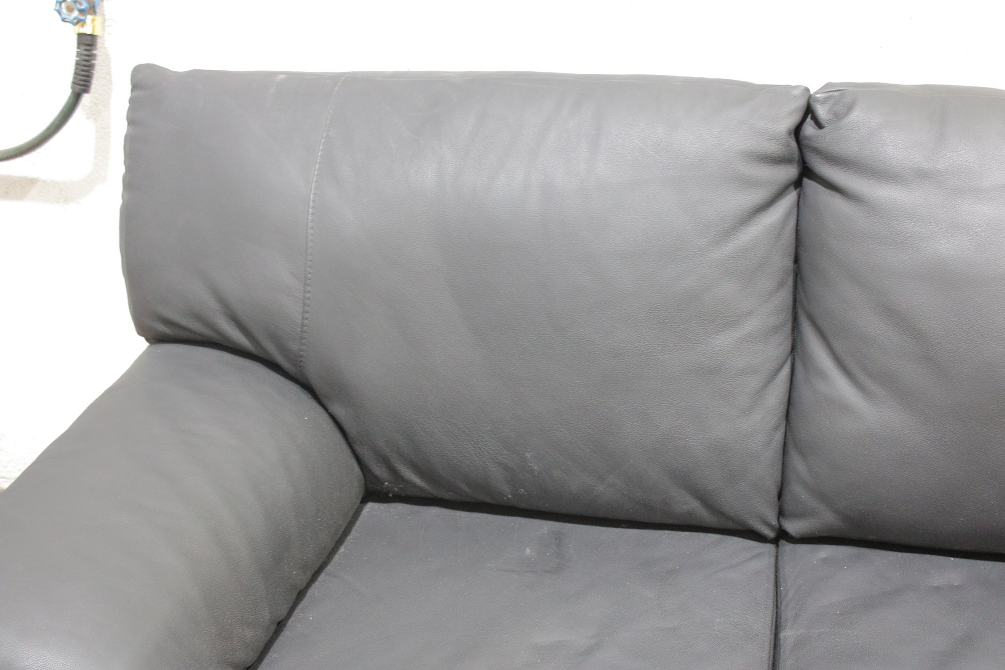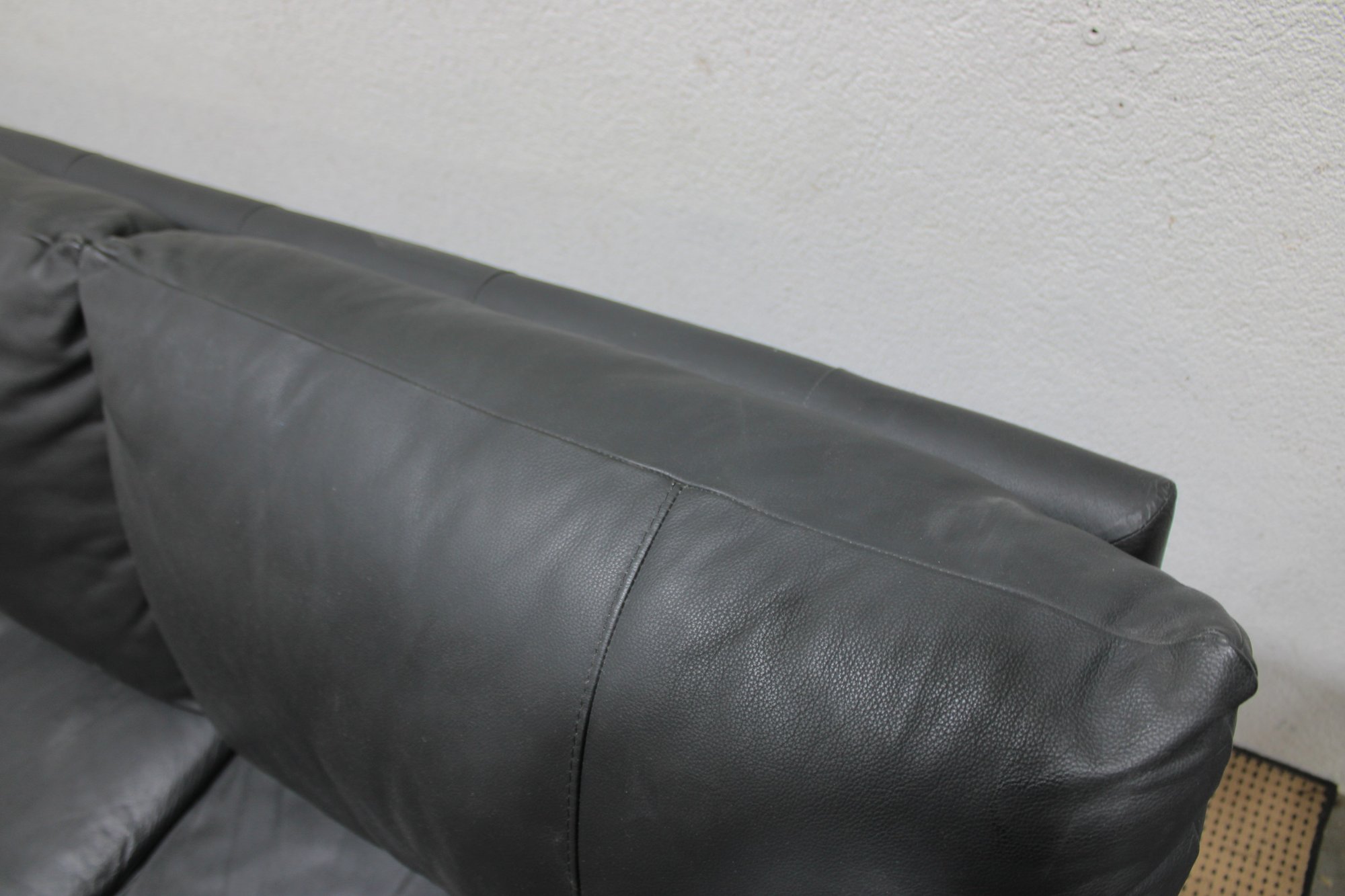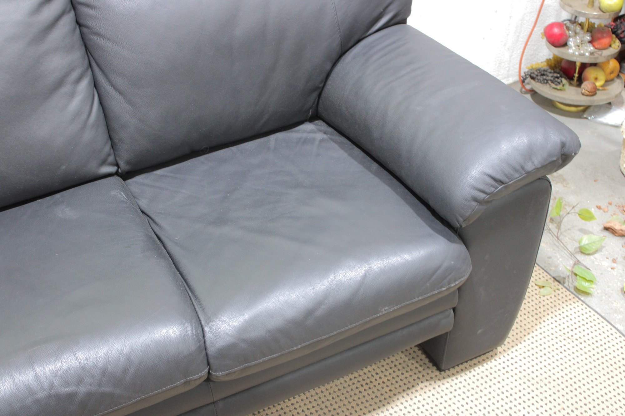a Nicoletti Italian leather sofa, a high-quality piece known for comfort, craftsmanship, and modern European design.