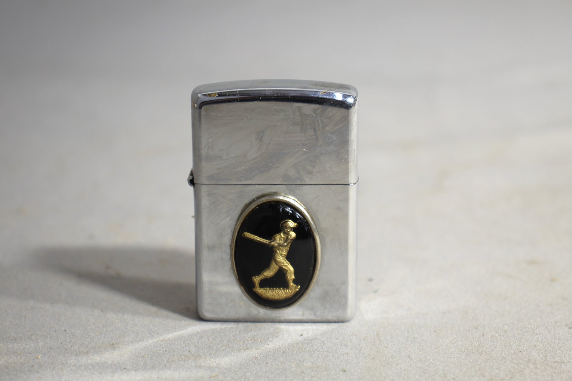 Collectible Zippo Lighter With Classic Baseball Player Emblem