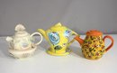 Collection Of 3 Artist-Crafted Ceramic Teapots Hand-Painted, Signed Works