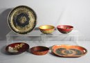 Small Red and Black Bowl: This exquisite bowl pairs a glossy red interior with a contrasting black exterior, both decorated with floral and avian motifs in a variety of colors that add depth and vivacity to the piece.