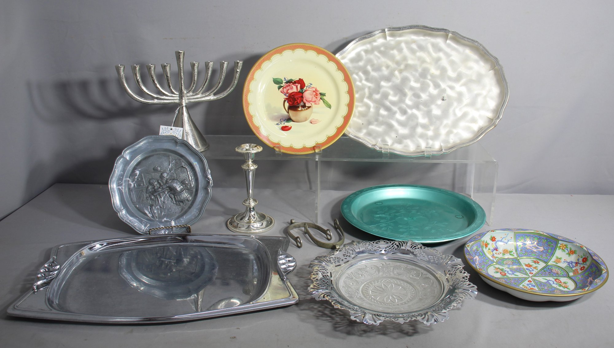 Menorah,Floral Decorative Plate,silver-plated Platter,Glass Relish Dish,Turquoise Plate,Candle Holders and Small Tray