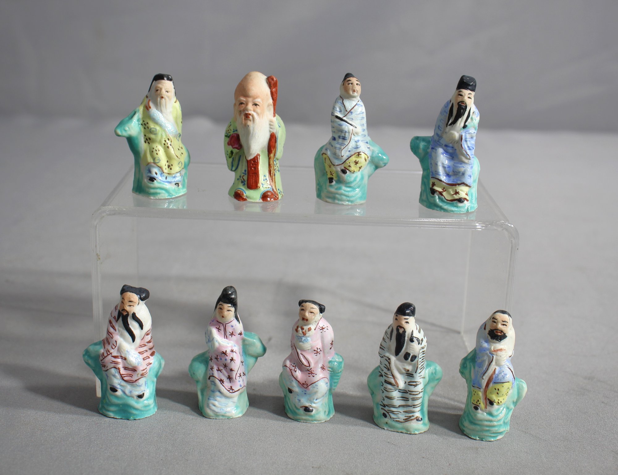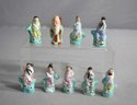 Each piece is delicately hand-painted, flaunting vibrant colors and intricate designs that bring each character to life. These figurines are likely to spark curiosity and admiration, representing a miniature tableau of Asian culture and tradition.
