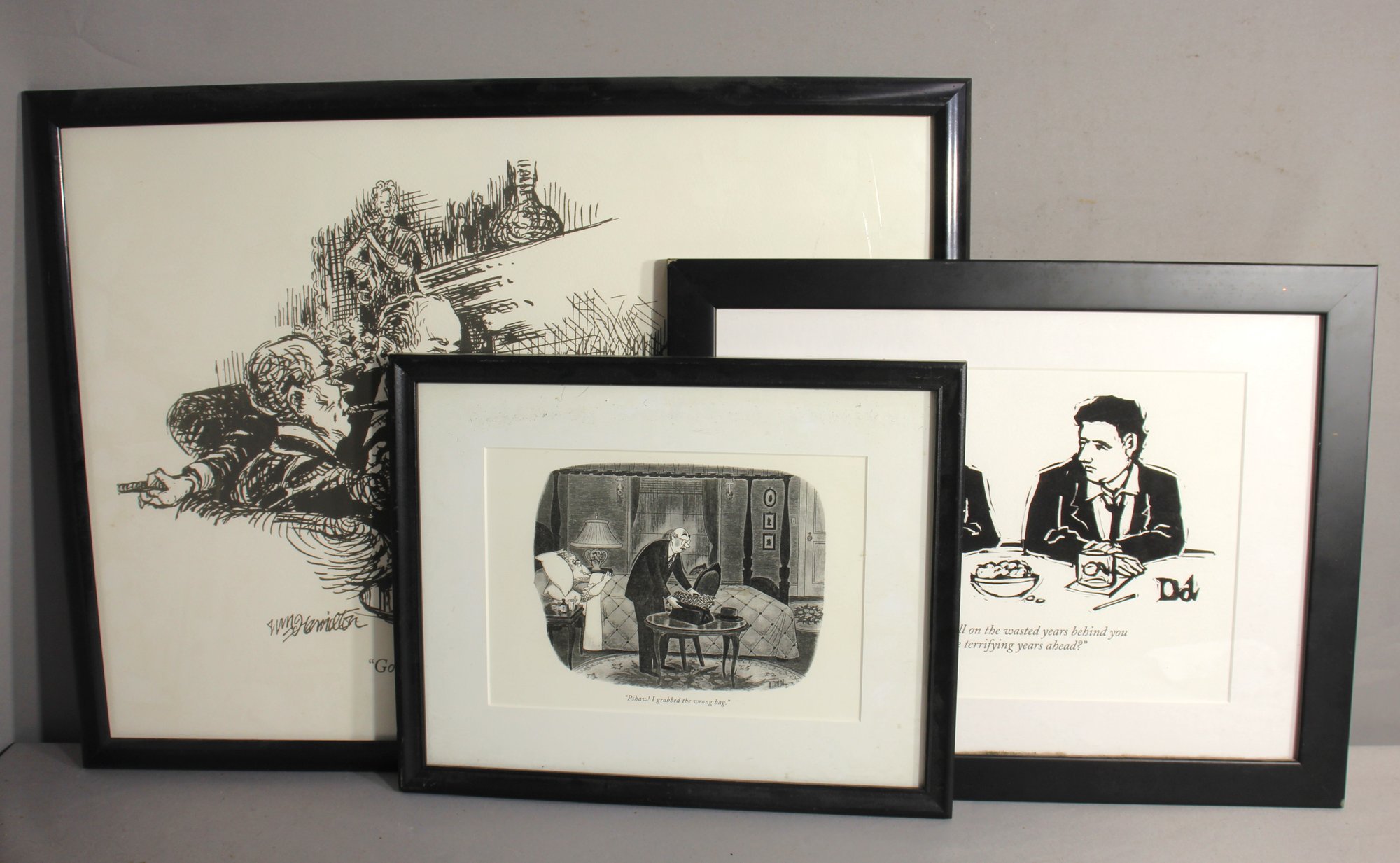 showcasing a variety of illustrative styles. Each piece in this set of three offers a glimpse into different narrative scenes, rendered in striking black and white.
