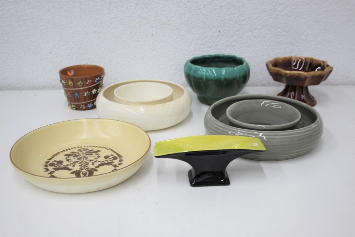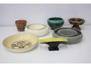 Colorful Group Lot Of Ceramic Planters, Round Ring Flower Frogs - Hull, Pfaltzgraff Etc.