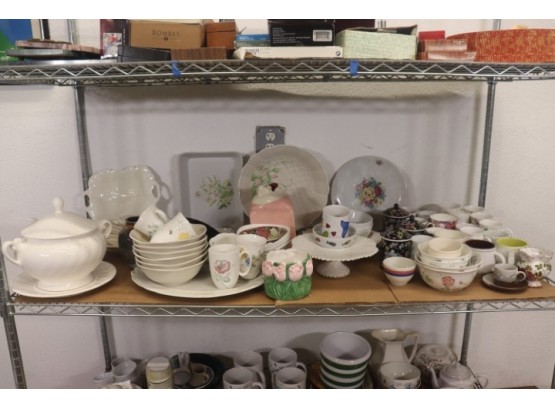 Colorful Two (2) Shelf Lot: Porcelain, Earthenware, Fine China And More - Spode, Lenox, Whittier And Other