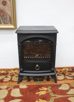 Bring warmth and charm to any room with this compact electric fireplace heater. Standing at 21.5 inches tall, this unit features a classic black finish with decorative accents and a glass front that mimics the cozy look of a real fireplace. Equipped with easy-to-use control switches on the side, this heater combines style and functionality, making it perfect for adding a touch of ambiance to small spaces.