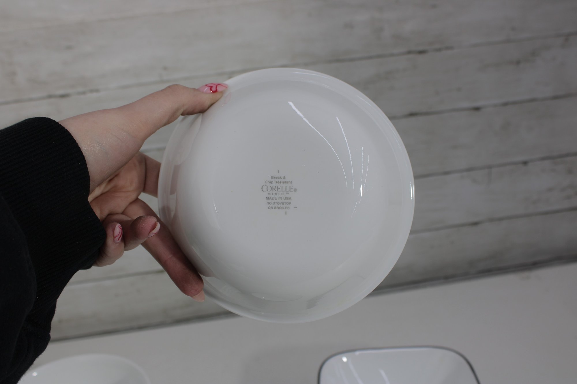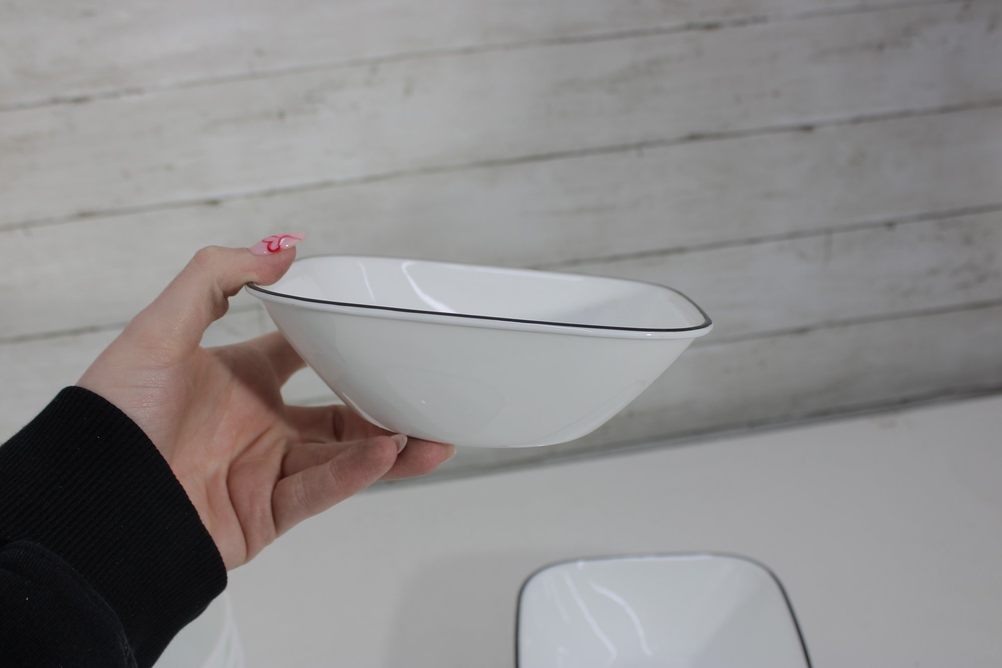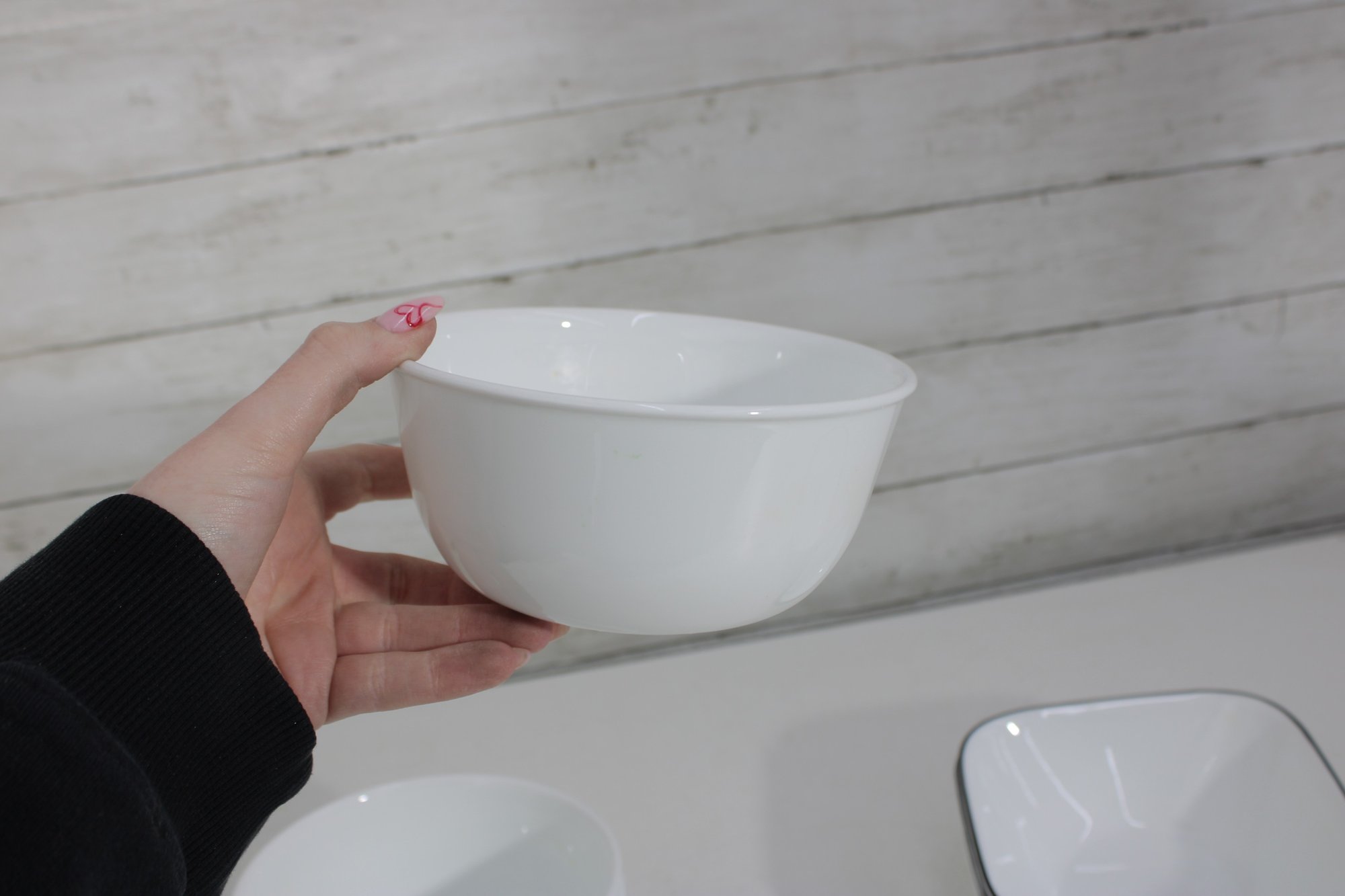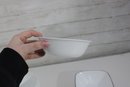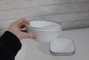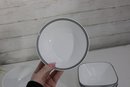 a group lot of Corelle bowls in the classic white design with a black rim accent. This versatile lot includes multiple bowls in mixed sizes, ideal for everyday use, serving, or completing a Corelle set.