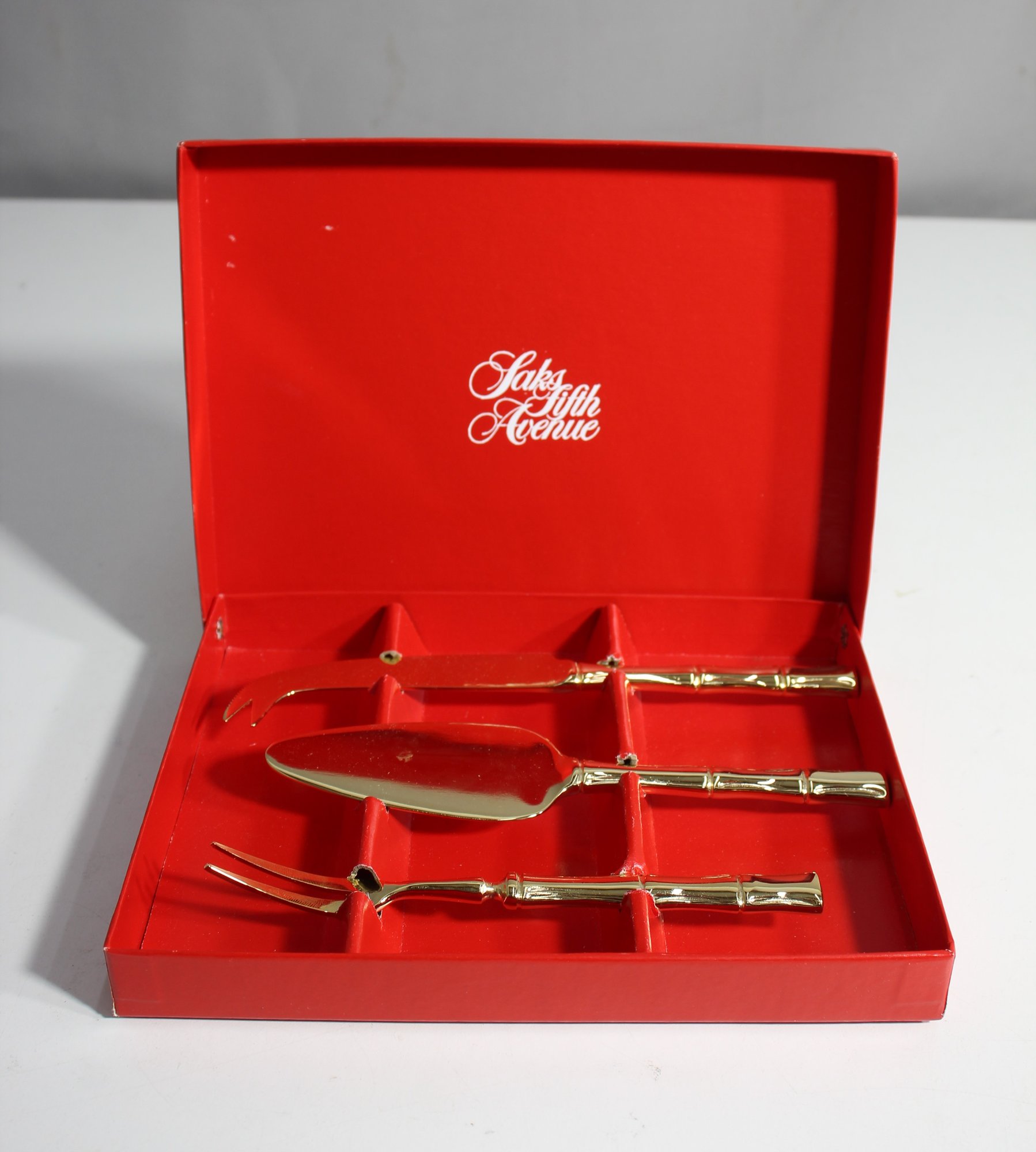 Cutlery Gold Electroplate Bamboo Pickle Fork Cheese Knife Server