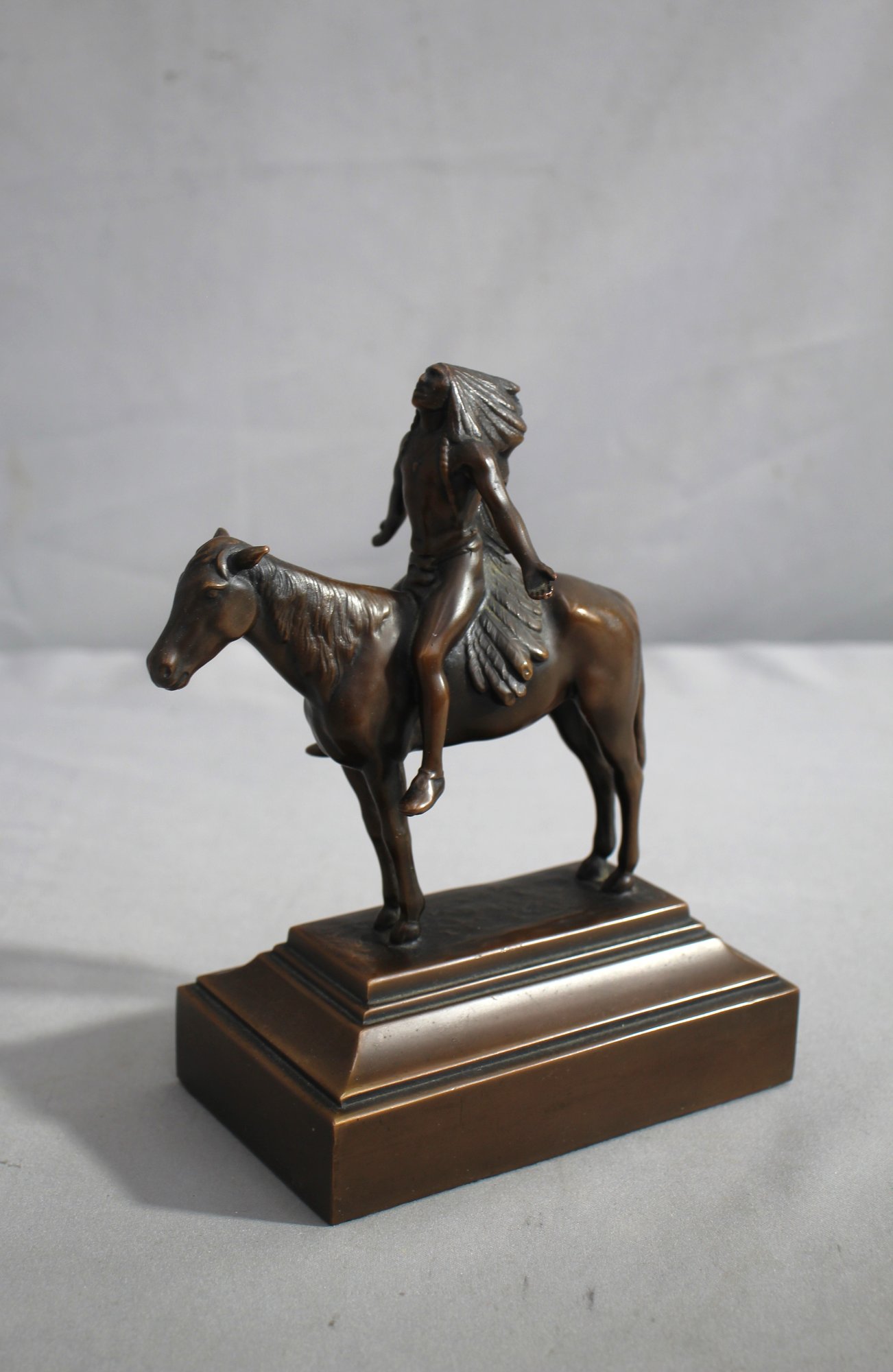 American 1861-1944, bronze coated metal on a stepped plinth, embossed "CED" signature