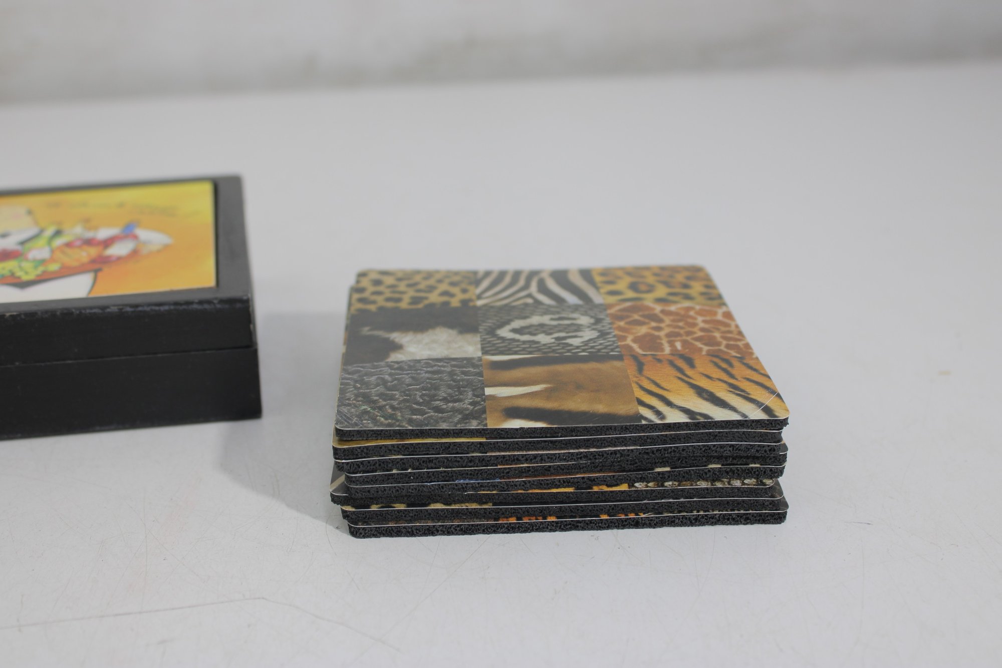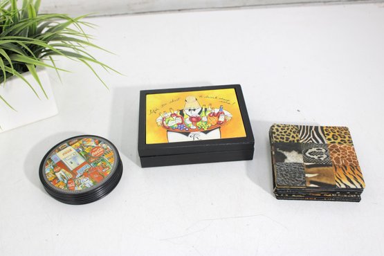 Decorative Coaster Collection Coca-Cola, Cocktail Quote & Animal Print Sets With Storage Boxes
