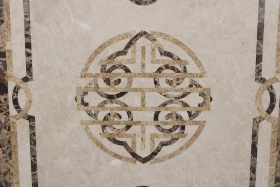 Add a touch of elegance and architectural detail to your space with this decorative marble inlay tile, featuring a striking geometric medallion design.