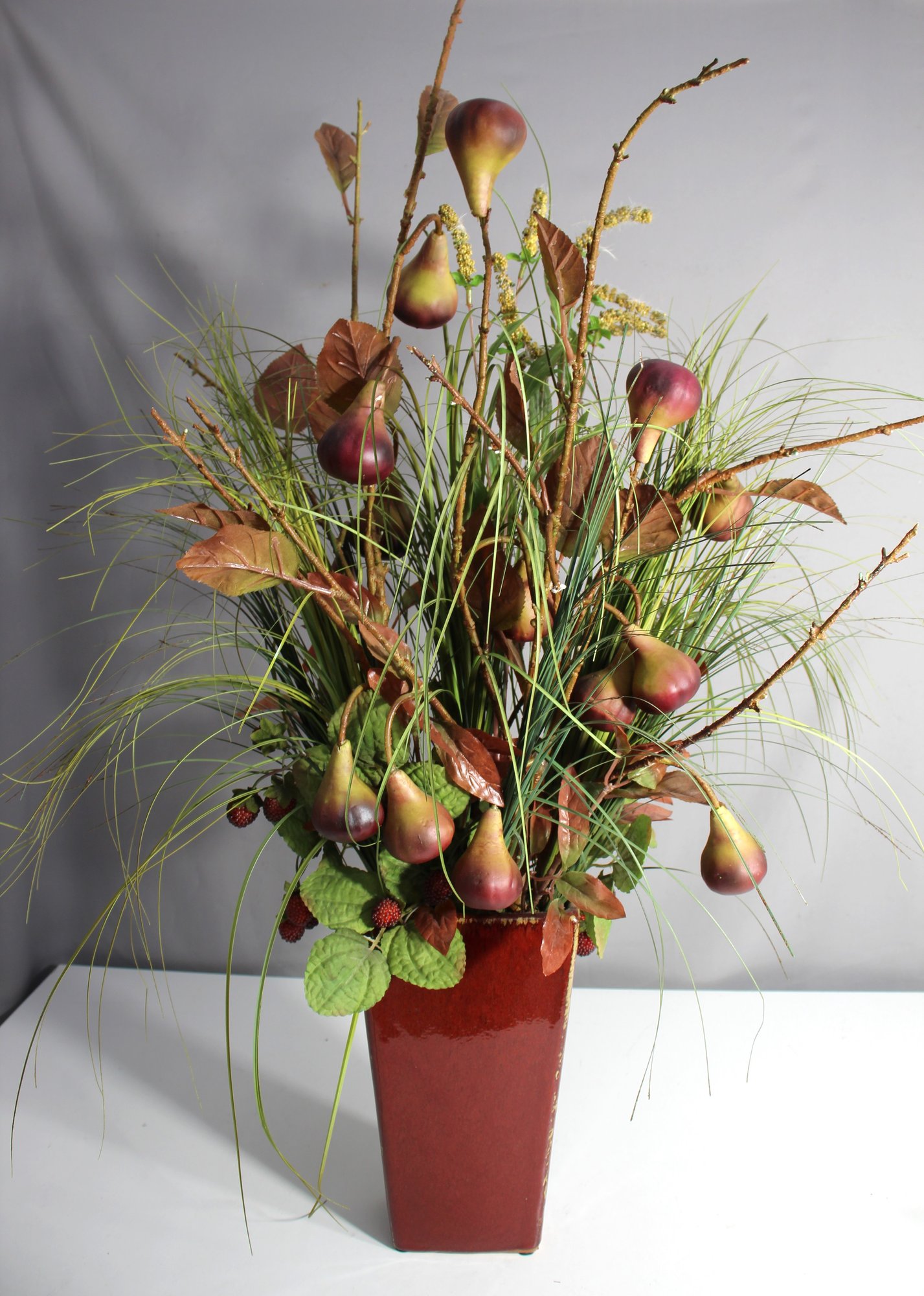 Decorative MAROON VASE W/GREENERY