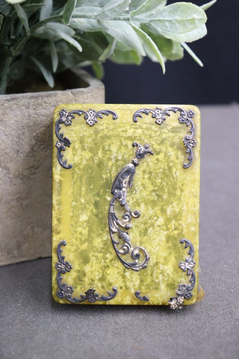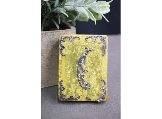 Decorative Pressed Celluloid Playing Card Case With Metal Adornment