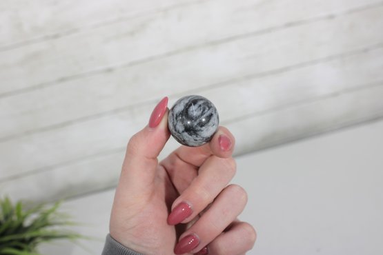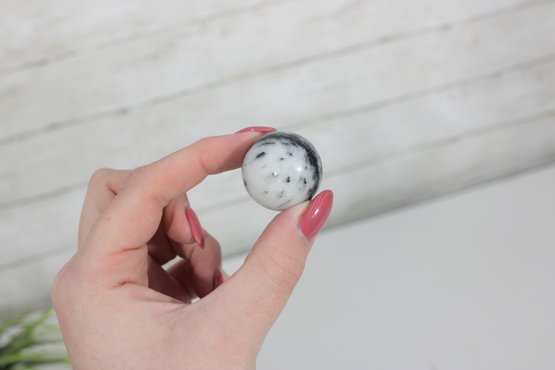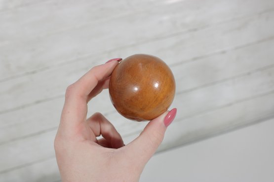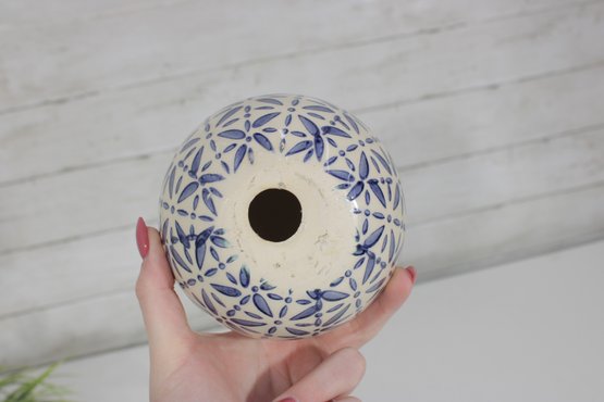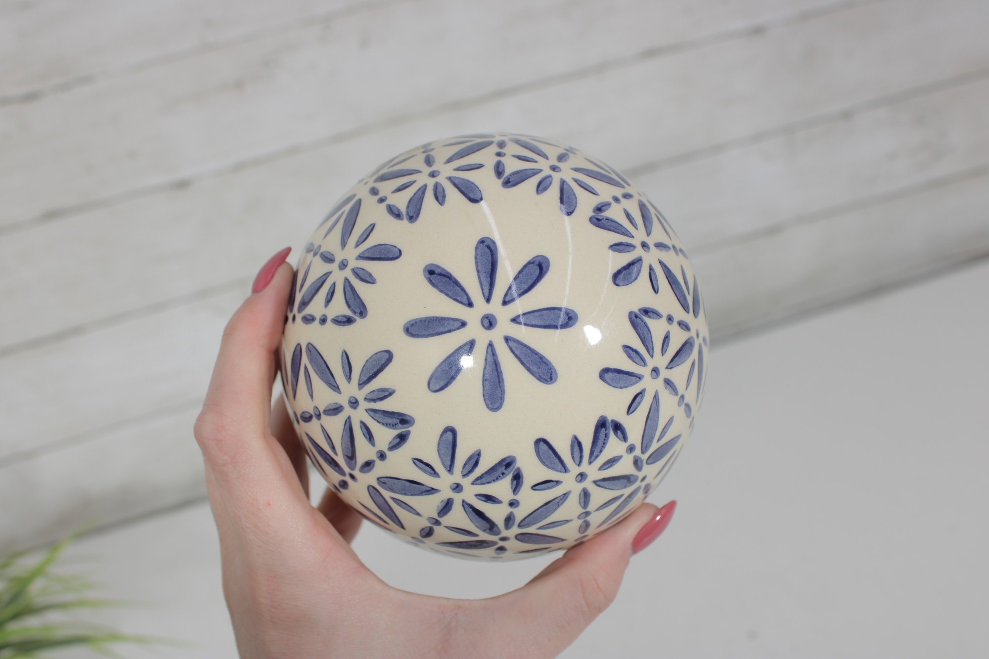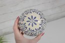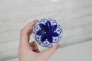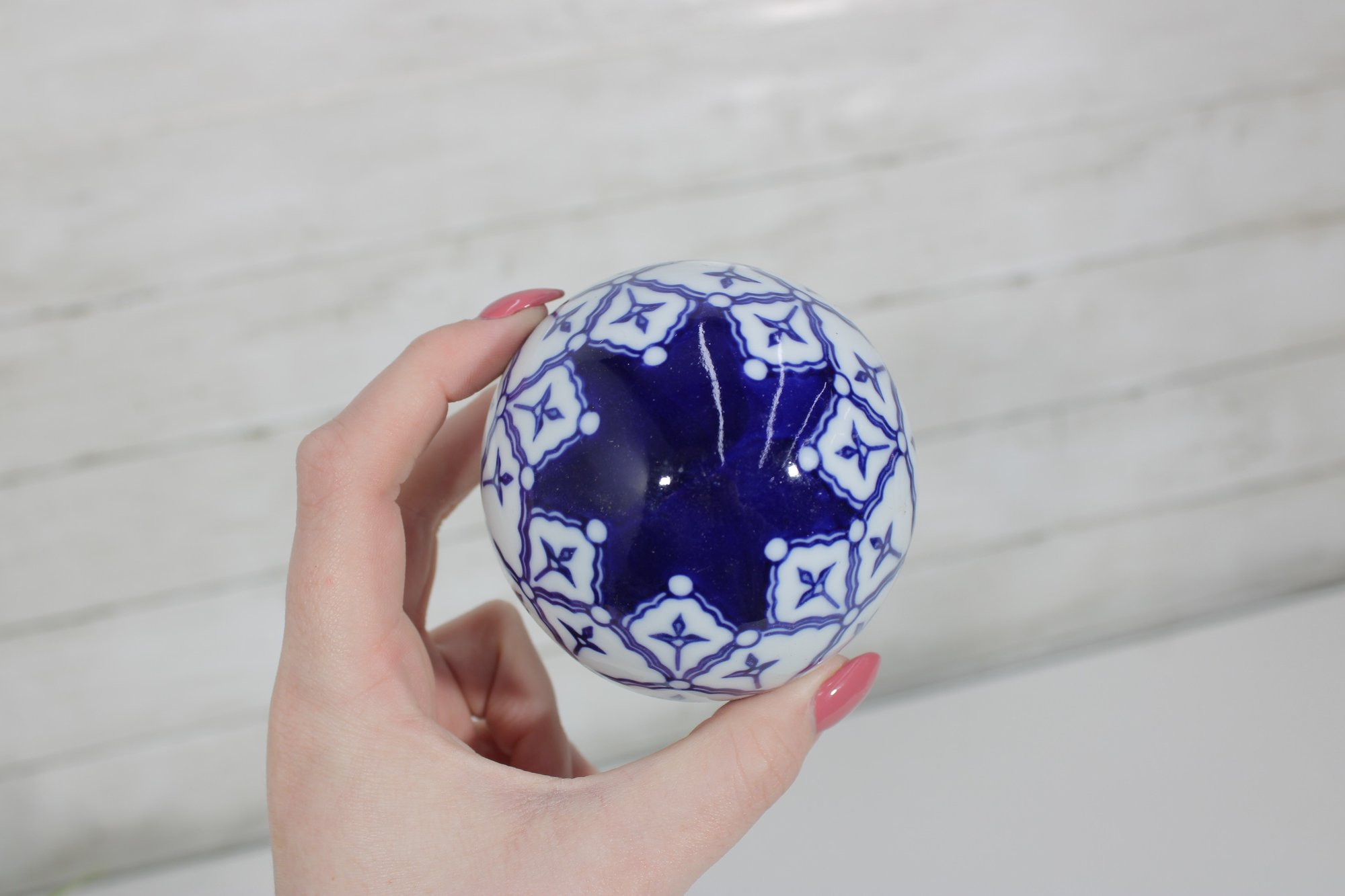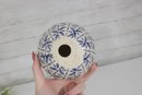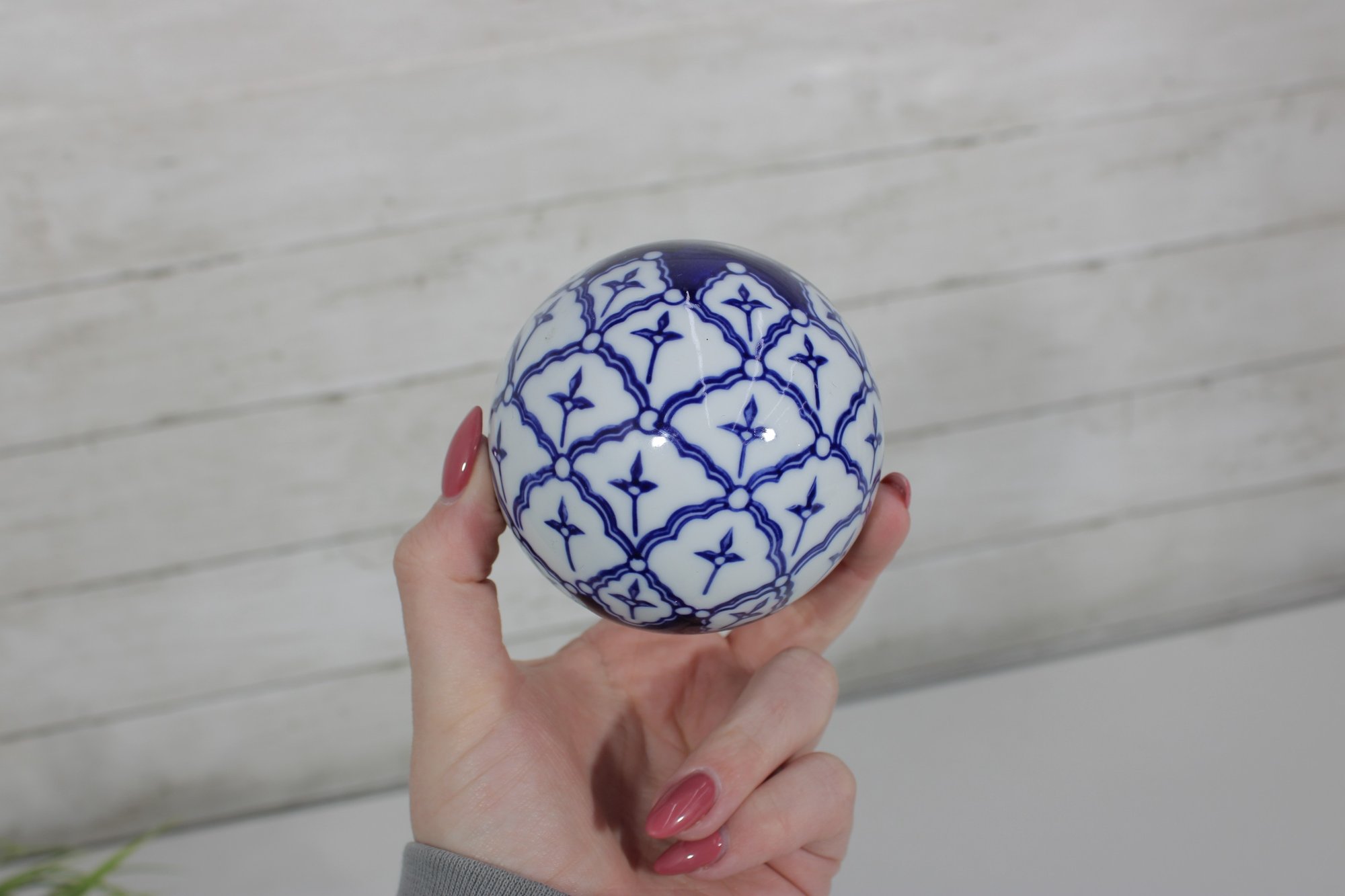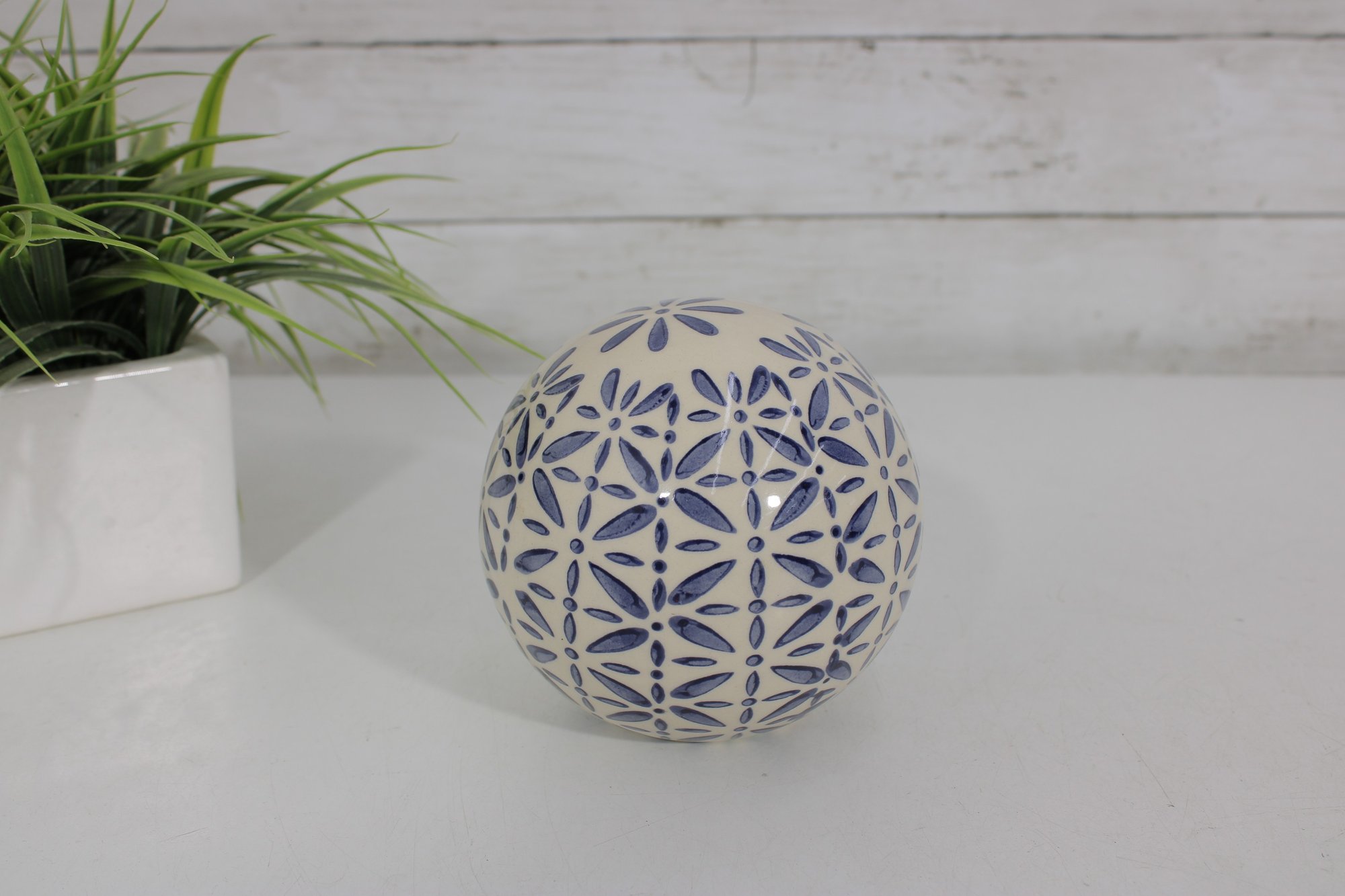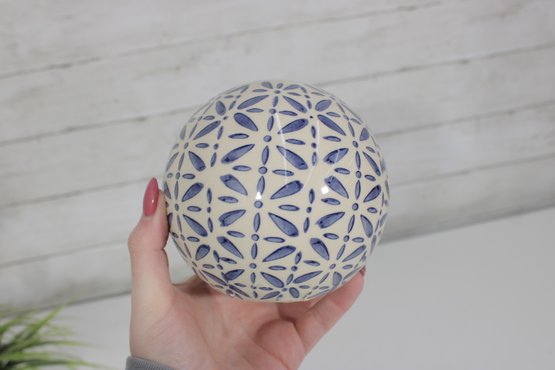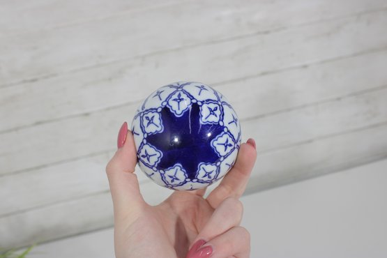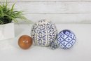 Decorative Sphere Set Blue & White Ceramic Orbs With Wood Ball & Glass Accent