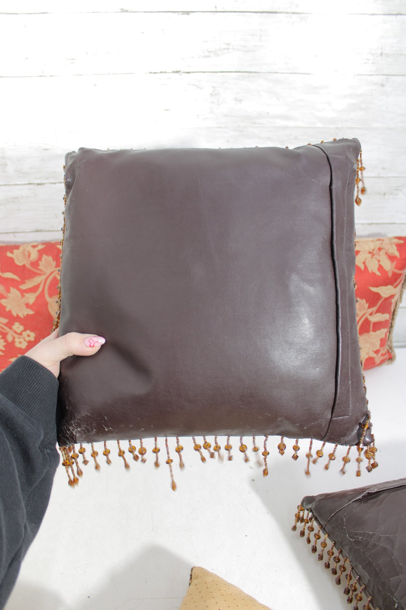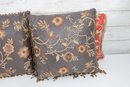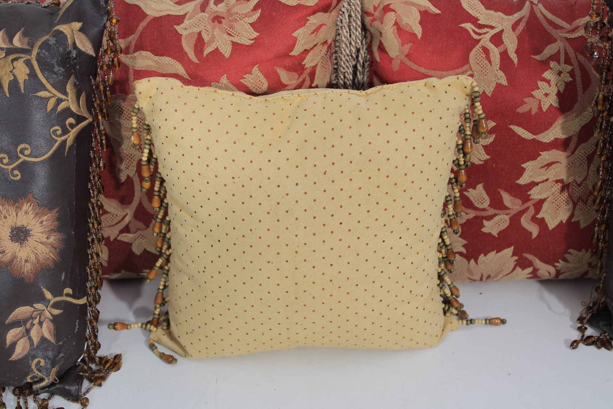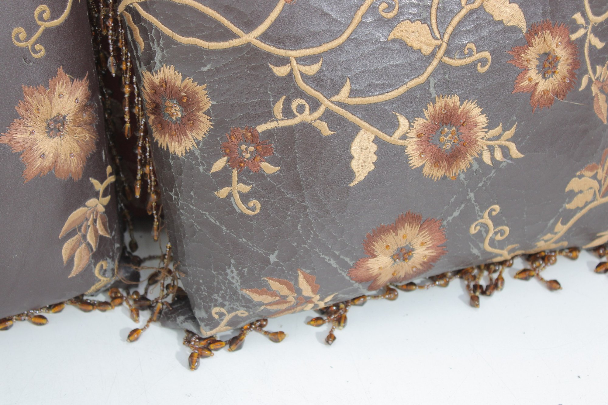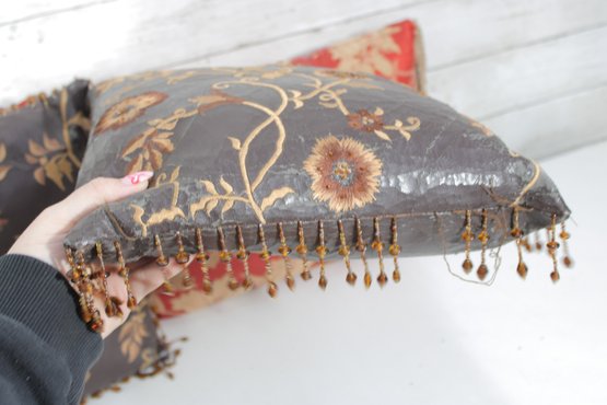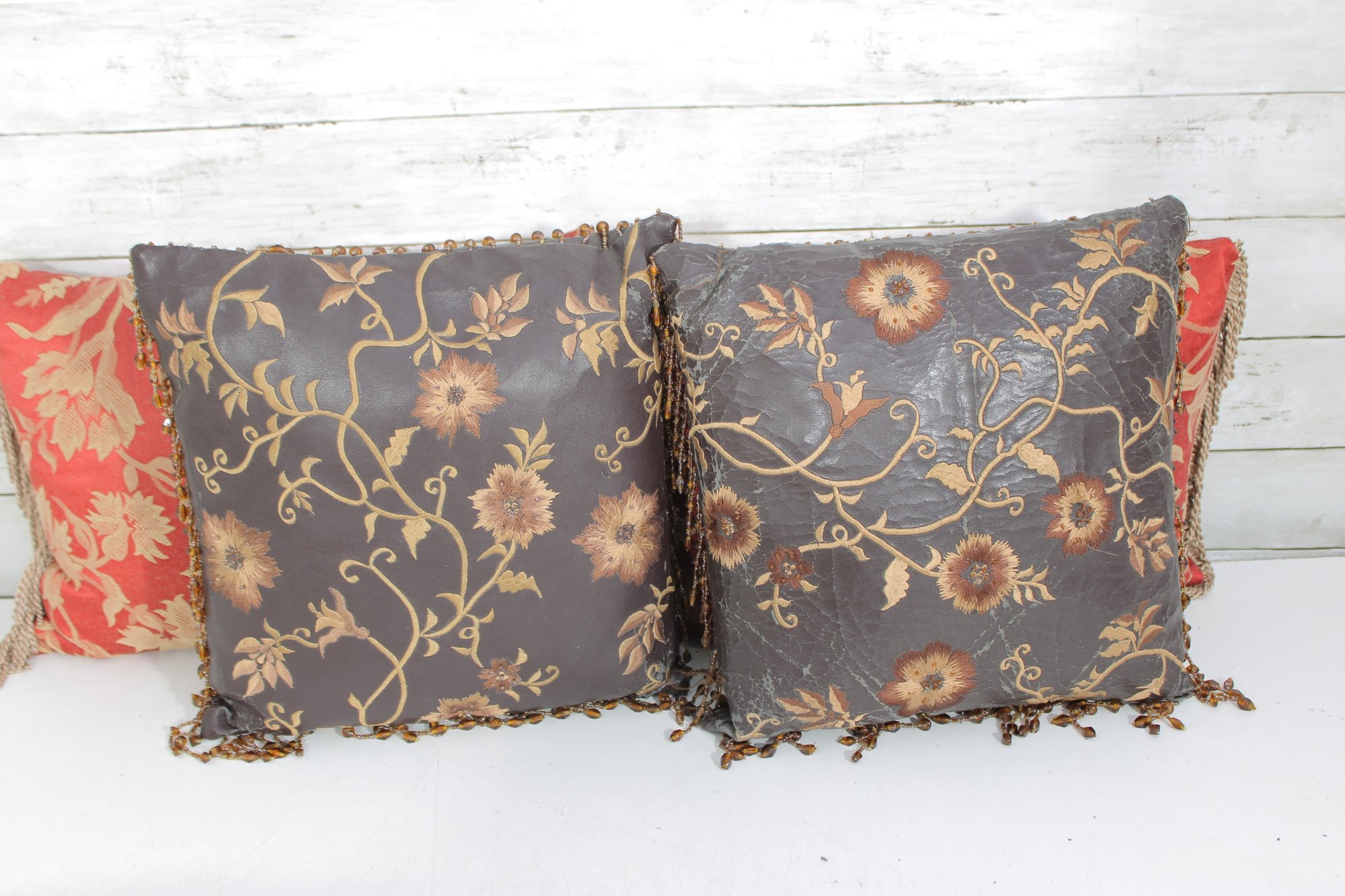 Add rich texture and layered style to your décor with this coordinated collection of decorative throw pillows. This set features a mix of floral patterns and solid accent pillows, some trimmed with charming beaded fringe for added visual interest and character.