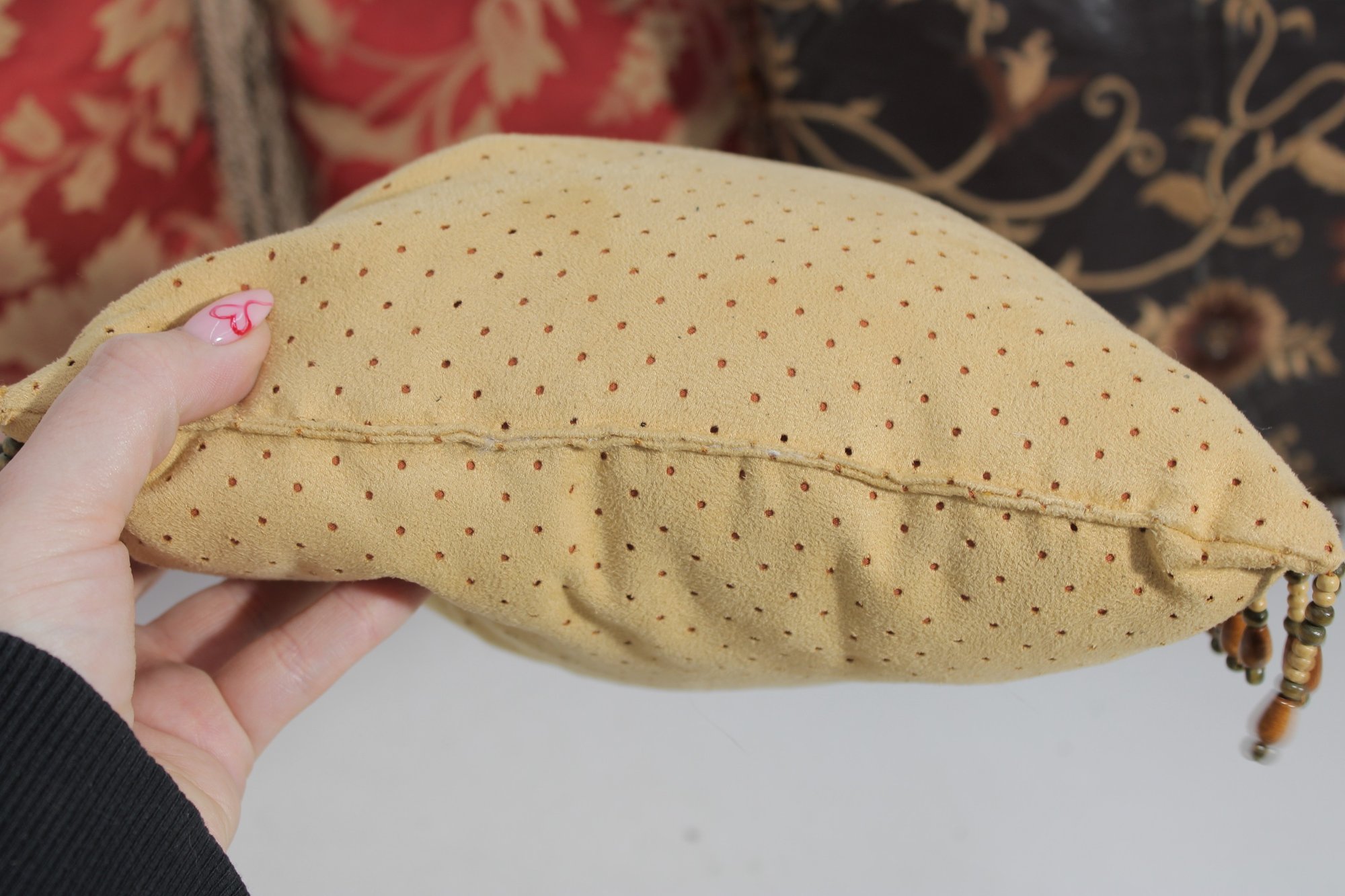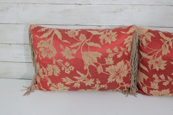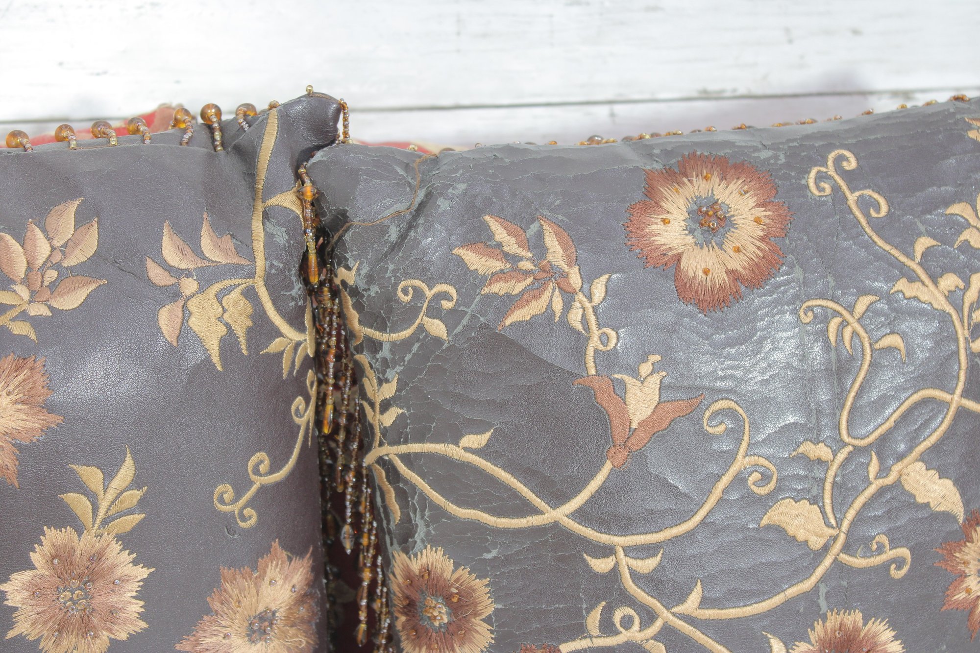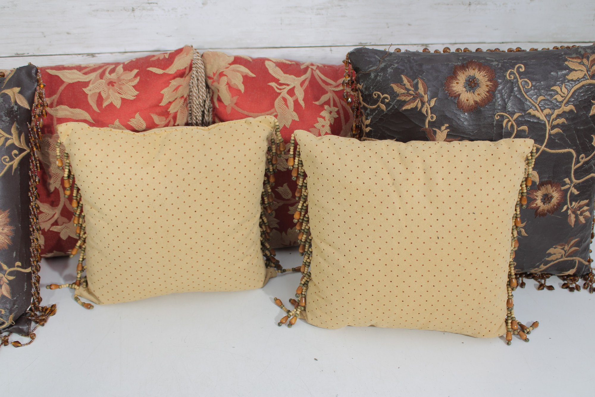 Add rich texture and layered style to your décor with this coordinated collection of decorative throw pillows. This set features a mix of floral patterns and solid accent pillows, some trimmed with charming beaded fringe for added visual interest and character.