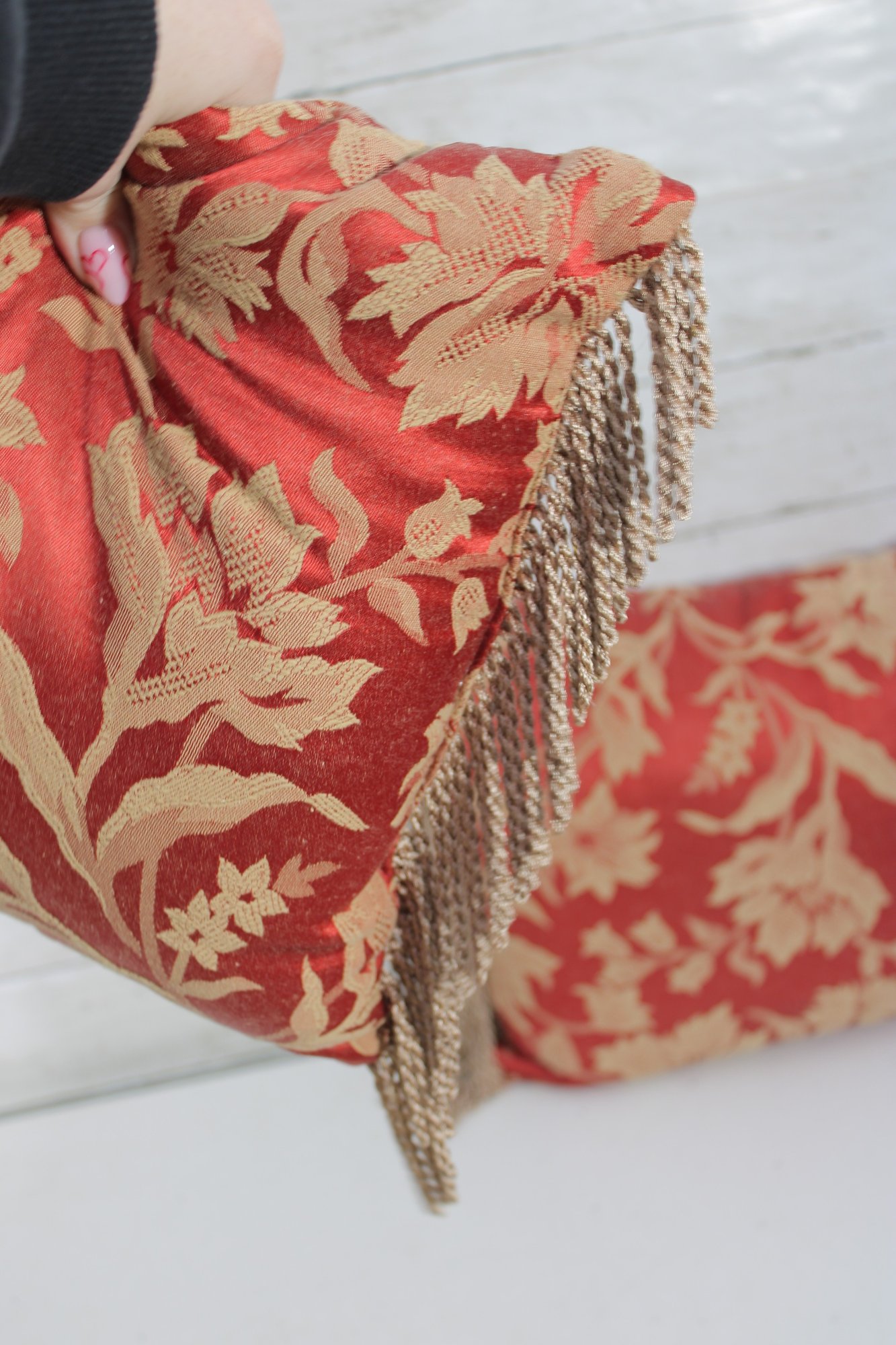 The color palette blends warm reds, soft golds, and deep charcoal tones, making these pillows ideal for traditional, boho, eclectic, or vintage-inspired interiors. Perfect for styling a sofa, bed, bench, or reading nook, this assortment allows you to mix and match for a full, designer look.