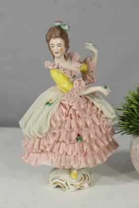 timeless charm to your collection with this exquisite Dresden porcelain ballerina figurine. Crafted in Germany, this delicate piece showcases intricate details and artistry