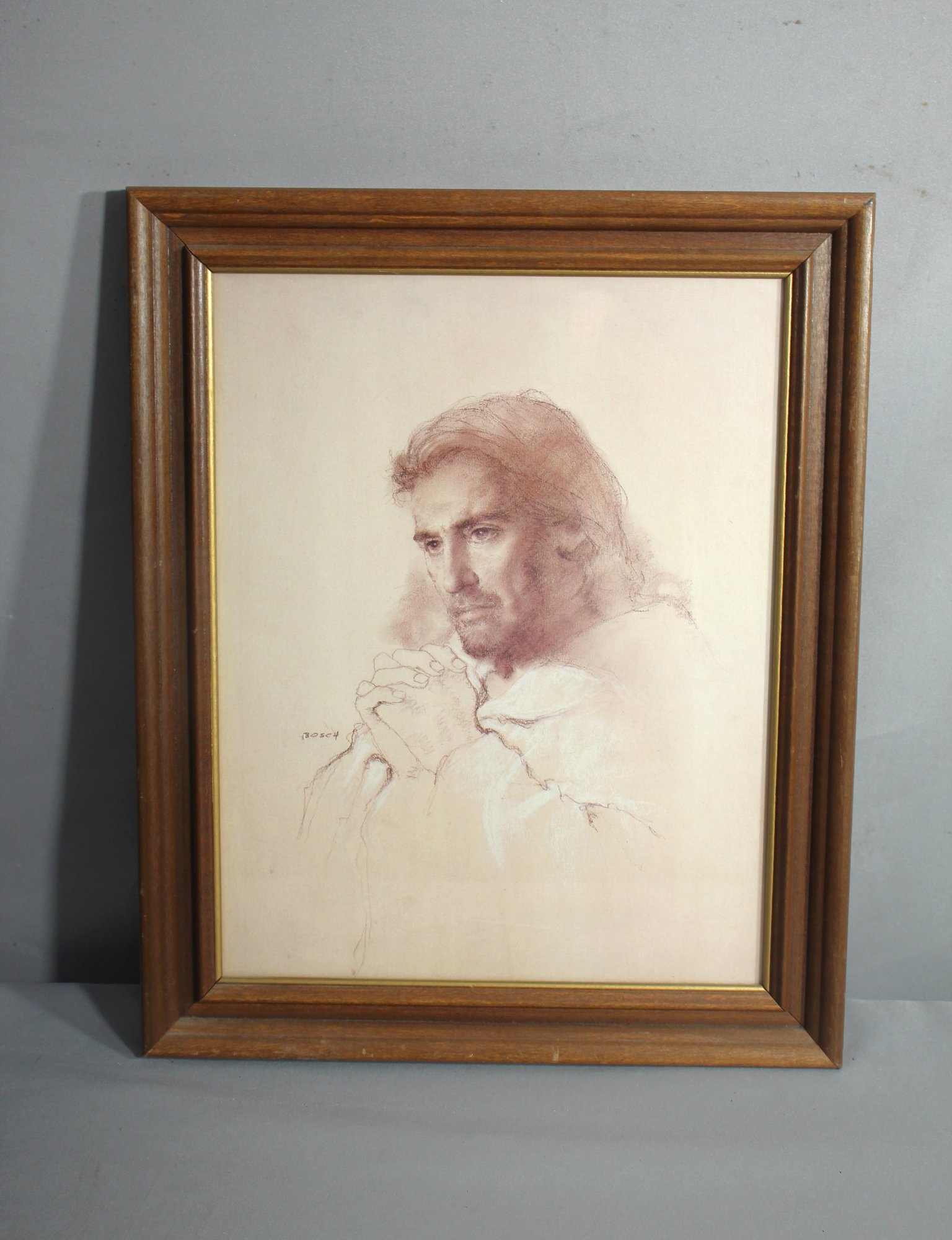This striking portrait captures the solemn and introspective gaze of a figure, rendered with soft yet precise pencil strokes that convey depth and emotion.