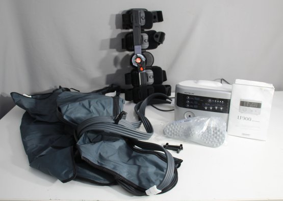 This Doctor Life LF900 Sequential Compression Device is designed to help improve blood circulation and reduce swelling, making it ideal for physical therapy and rehabilitation purposes. The set includes the main compression unit, leg sleeves, user manual, and a brace. The LF900 model is known for its advanced features, providing adjustable compression modes for optimal therapeutic benefits.