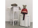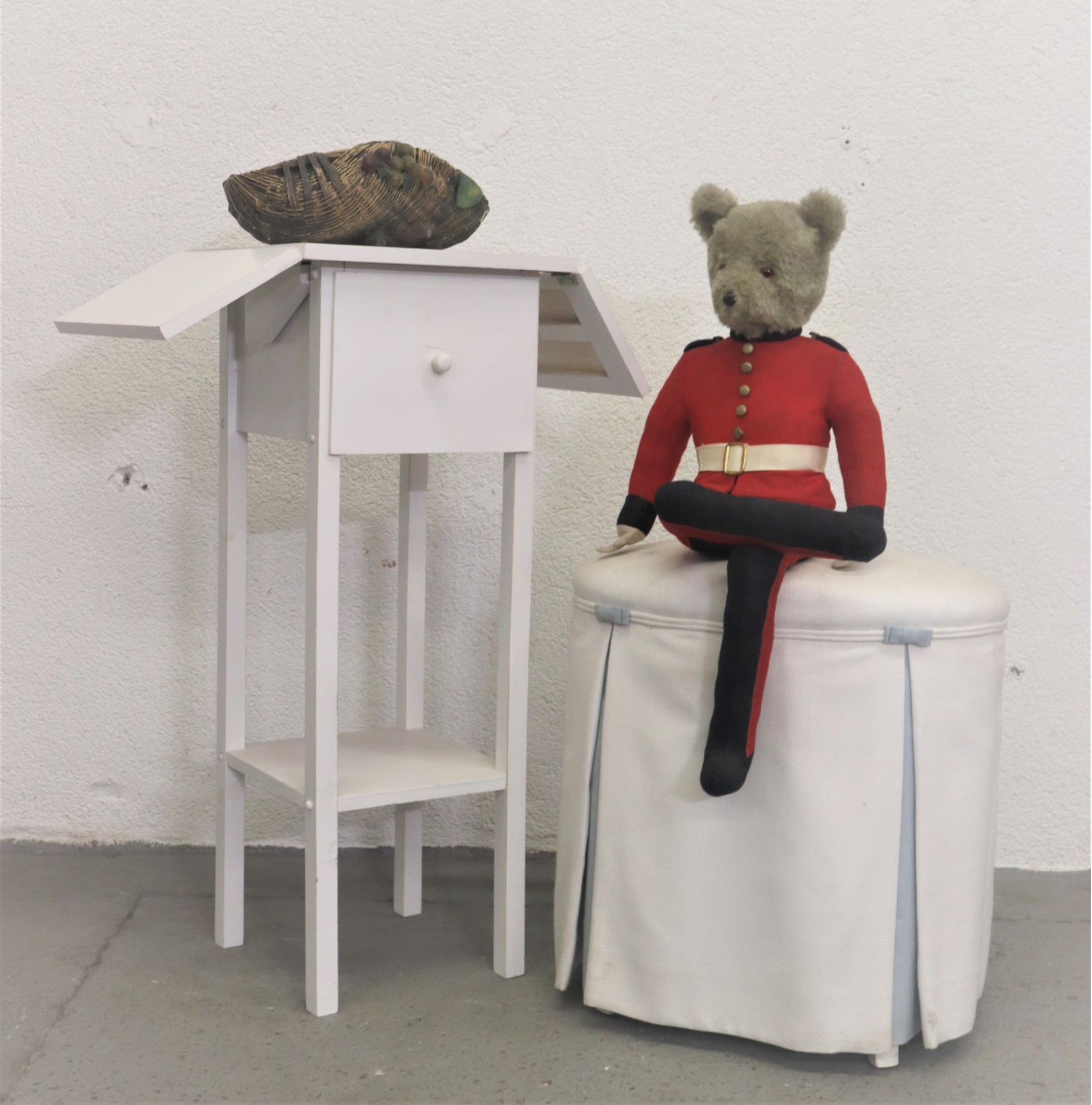 Draped & Pleated Vanity Stool With Square White Boudoir Occasional Table