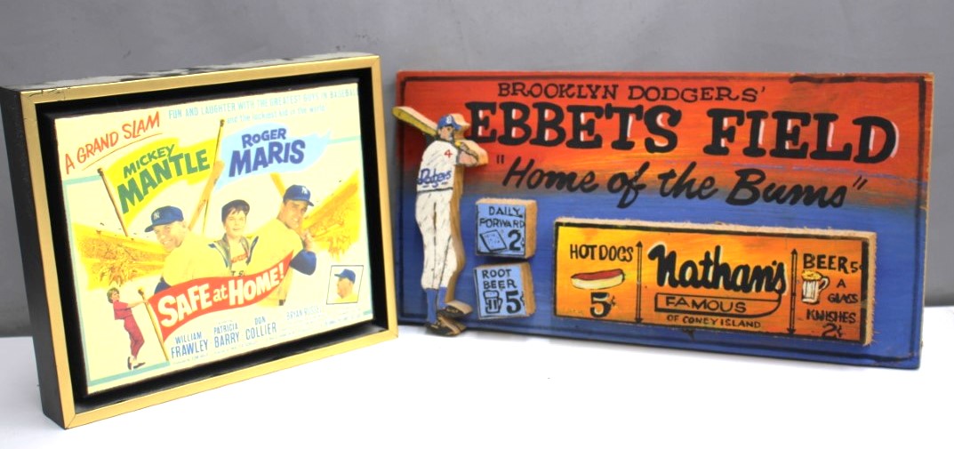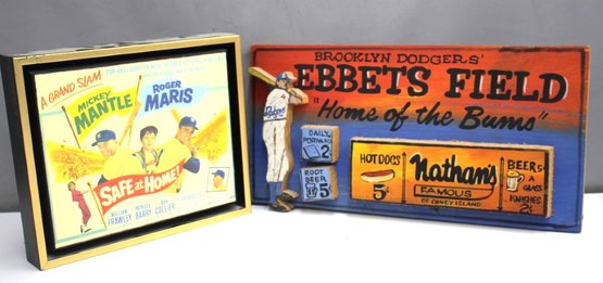 Ebbets Field Brooklyn Dodgers Folk Art & Mickey Mantle Roger Maris New York Yankees Print