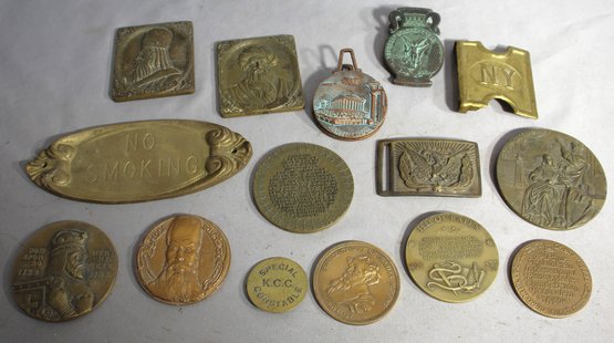 Eclectic Collection Of Historical Brass Medallions And Plaques