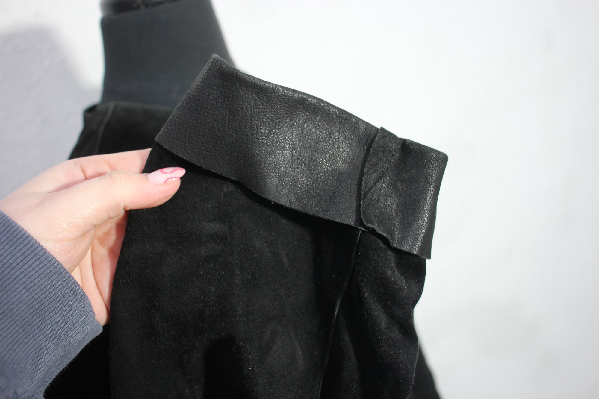 Long sleeves with leather-trimmed cuffs