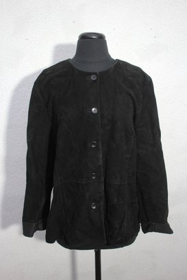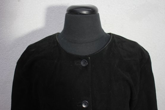 Upgrade your wardrobe with this Eileen Fisher women’s black suede leather jacket, featuring a chic, minimalist design perfect for any occasion. Made from soft, genuine suede, this jacket offers timeless elegance and effortless sophistication