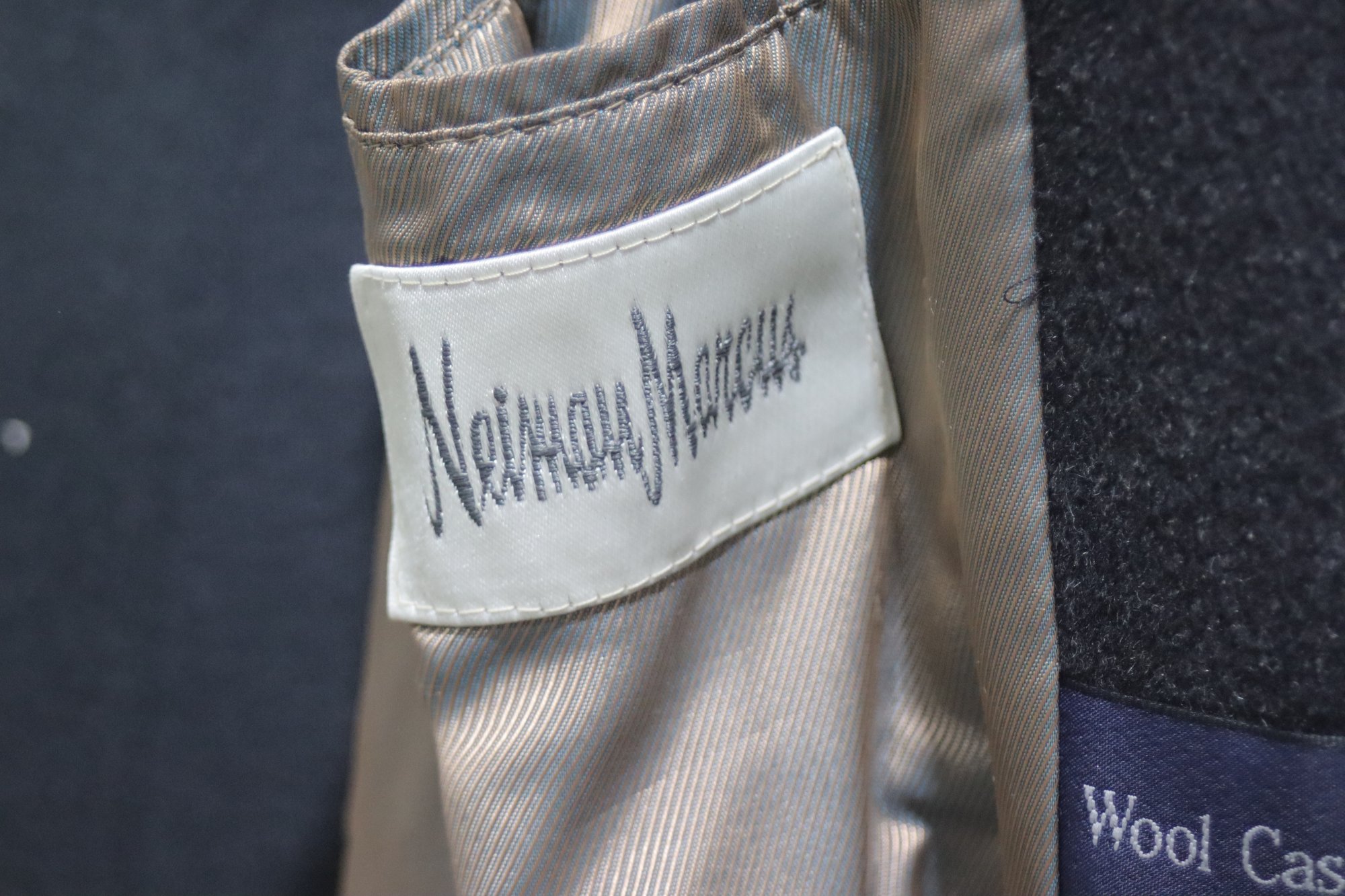 luxury and sophistication with this Neiman Marcus wool, cashmere, and angora blend coat. Featuring a soft, high-quality fabric blend, this coat is both warm and stylish, making it perfect for cooler seasons.