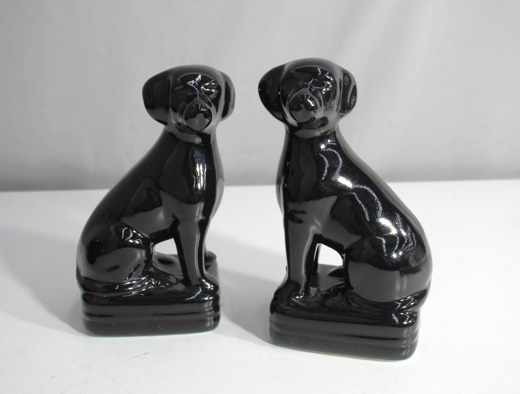 This stylish set of two 8-inch black ceramic dog figurines features a sleek, glossy finish that adds a modern touch to any space. The dogs are crafted in a sitting pose, with careful attention to detail in their form, making them a striking decorative piece for dog lovers or those looking to add a sophisticated accent to their decor. Each figurine has a padded base to protect surfaces. Perfect for mantel displays, bookshelves, or as a unique gift.
