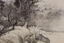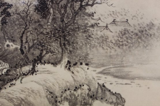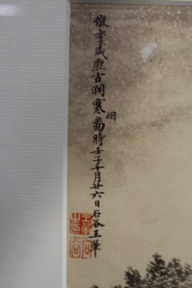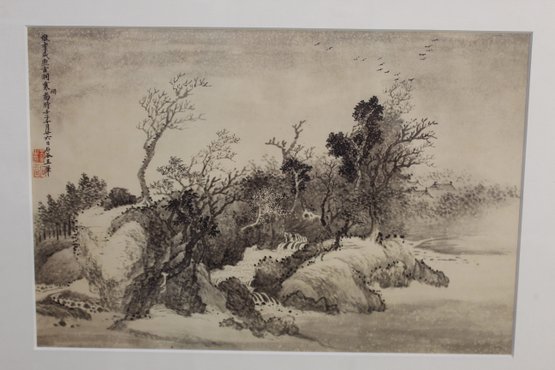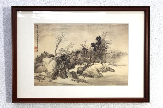 The painting is accentuated with Chinese calligraphy and red seal marks on the upper left, adding authenticity and cultural significance. The detail in the brushwork captures the movement of nature, creating a harmonious and tranquil visual.