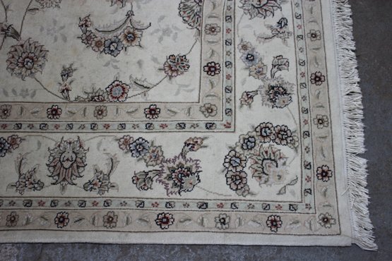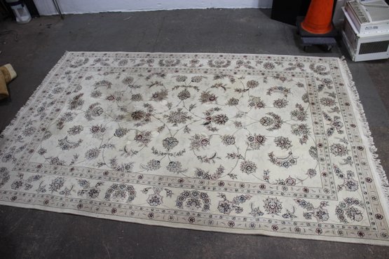 Elegant Hand-woven Persian Floral Wool Rug - Cream Background