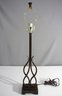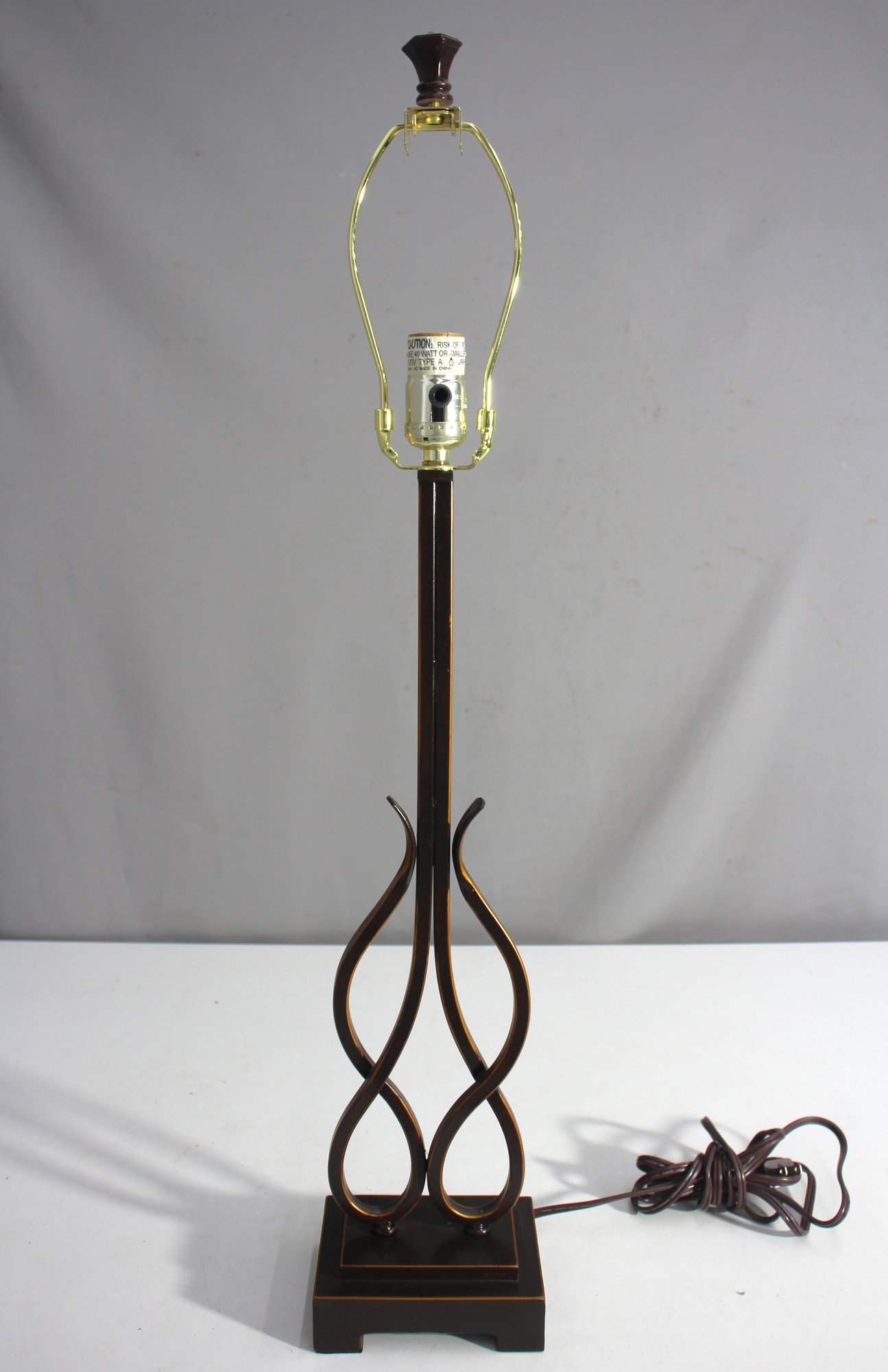 vintage look table lamp showcases a sophisticated iron scroll design with a dark bronze finish, blending classic and contemporary elements. The sturdy rectangular base and refined craftsmanship make this piece a stylish addition to any room. Its unique looped pattern and attention to detail make it a standout accent for living spaces, bedrooms, or offices.