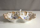 This stunning vintage double serving dish combines elegance and functionality with its unique scalloped design and intricate detailing. Featuring hand-painted floral accents and luxurious gold trim, this piece is both a work of art and a practical serving dish for special occasions.