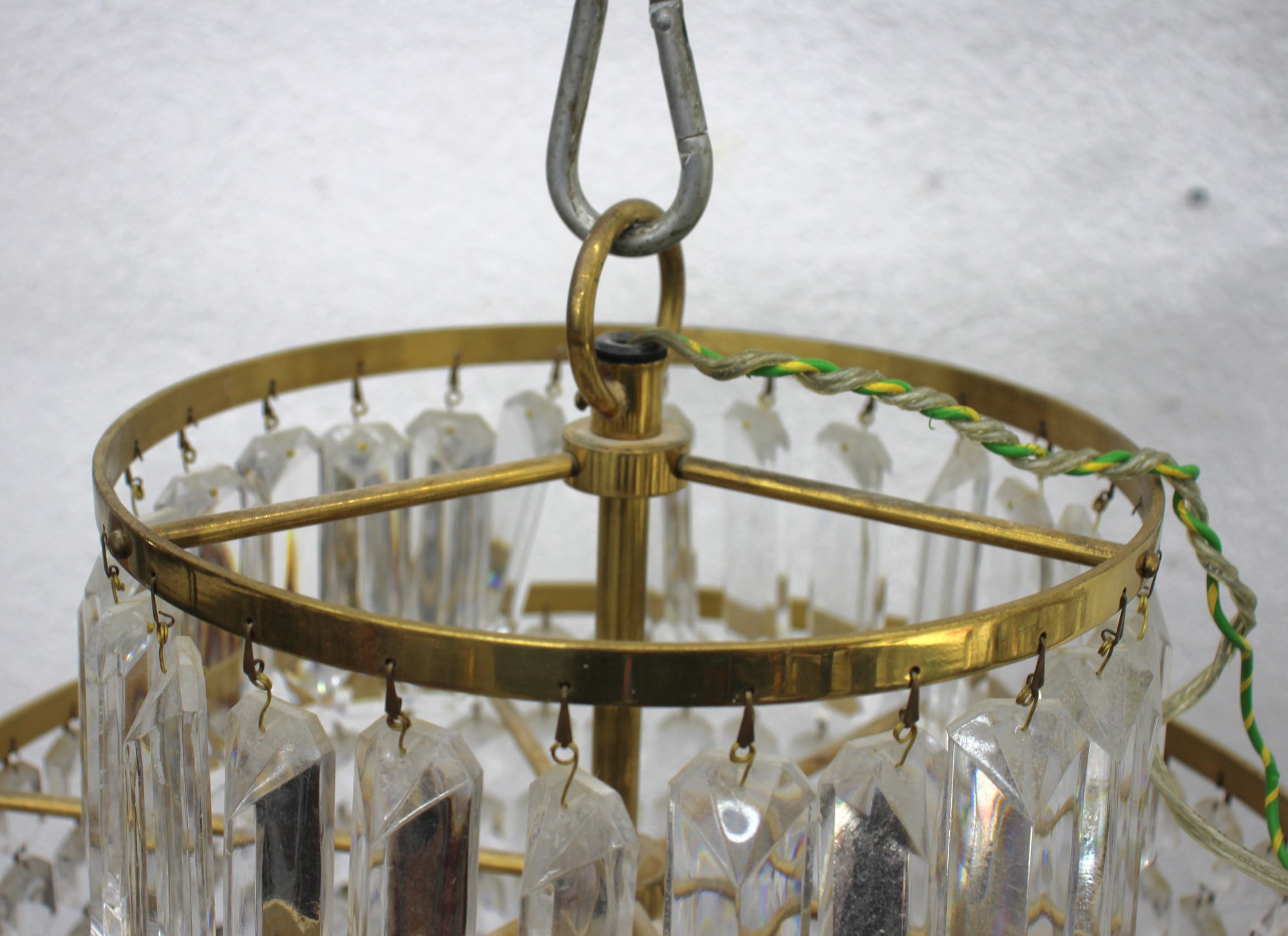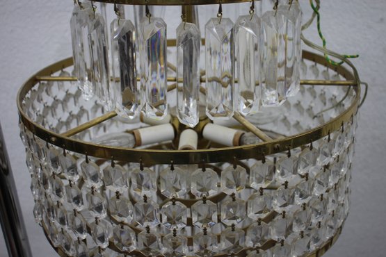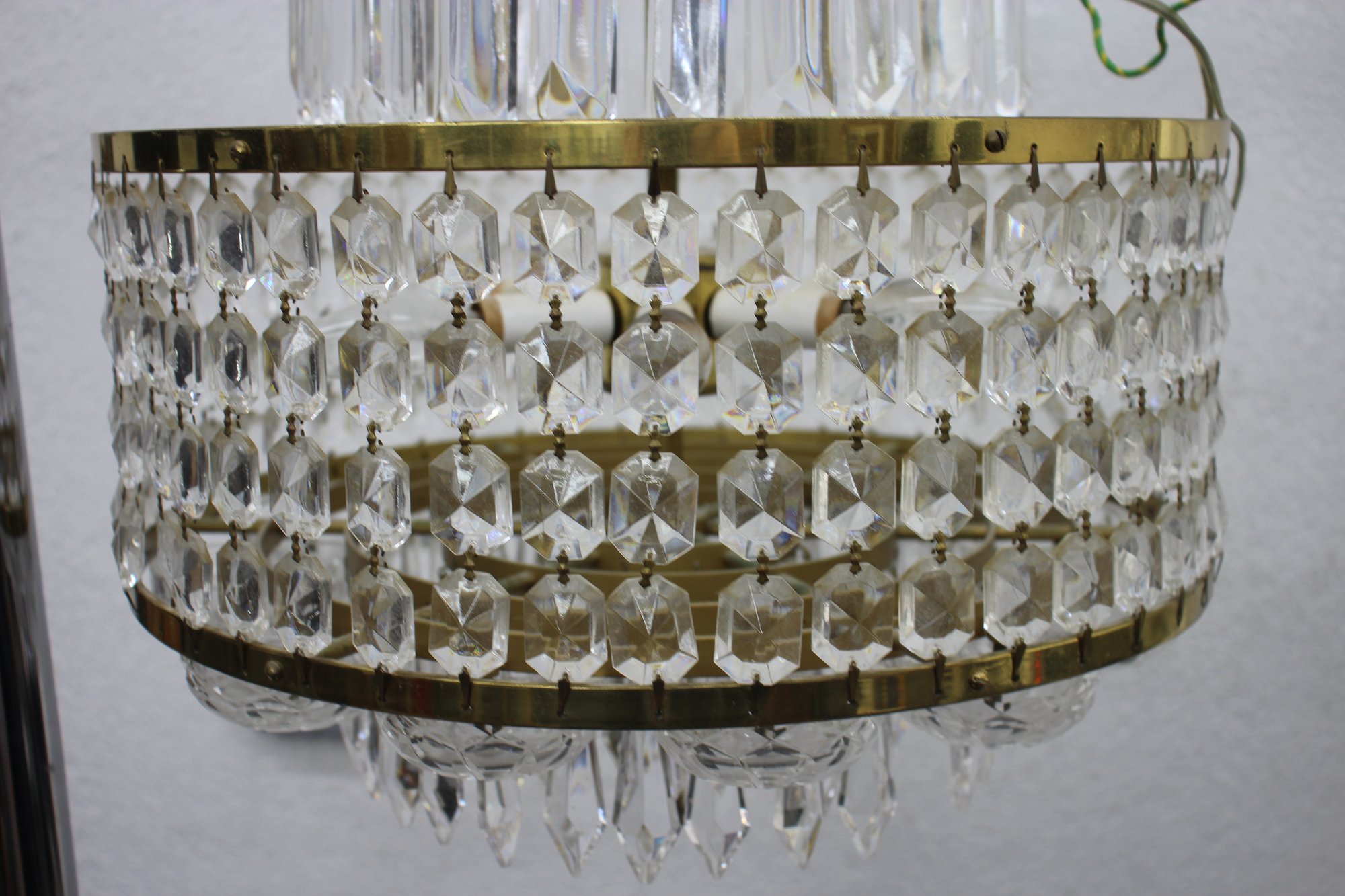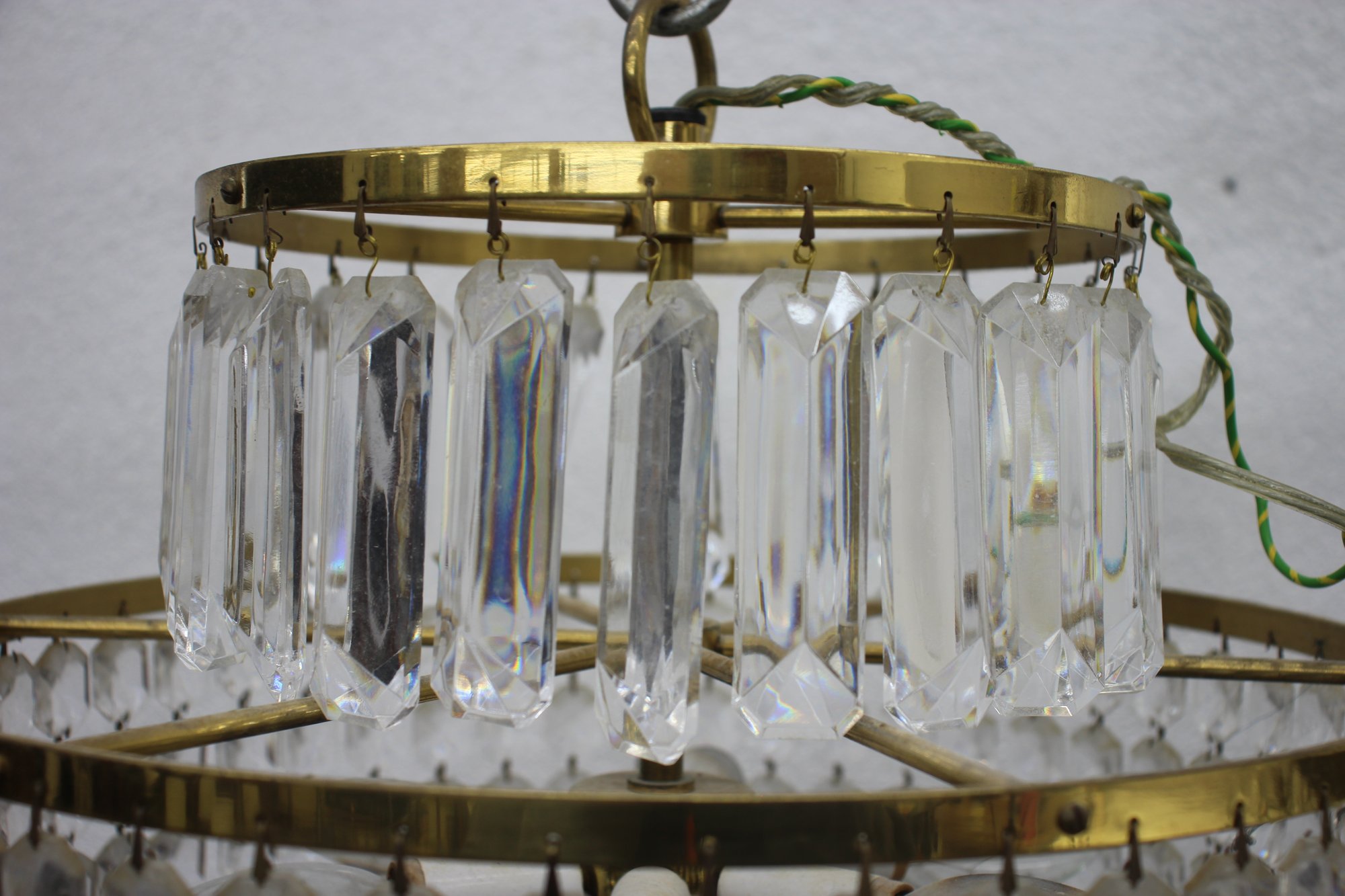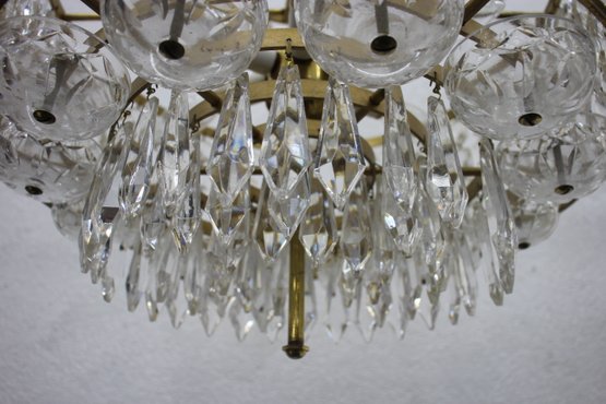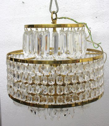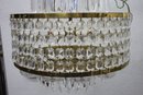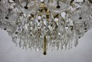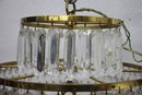 this stunning Waterford Crystal two-tier chandelier. Featuring shimmering cut crystal prisms arranged in concentric rings, this exquisite piece combines classic elegance with timeless craftsmanship. The chandelier's brass frame adds a warm, luxurious touch, complementing the brilliance of the crystal drops. Ideal for formal dining areas, entryways, or any room that calls for a statement lighting fixture.