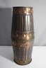 a distinctive antique copper cane holder, featuring intricate embossed patterns and a striking design. This piece exemplifies traditional craftsmanship, making it not only a functional item but also a decorative accent for any home or office setting.