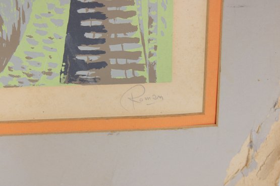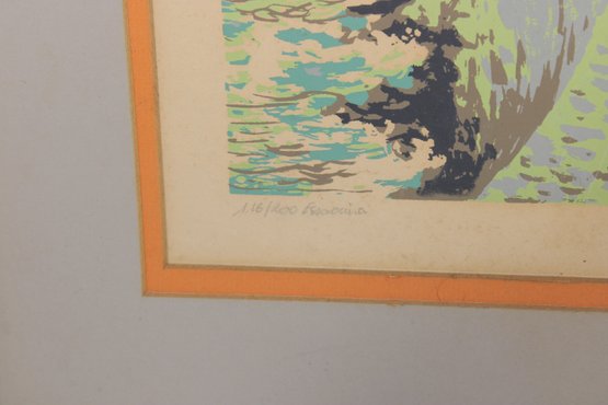 Presented with a neutral mat accented by a subtle orange border, the piece is ready for framing or display as-is.