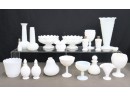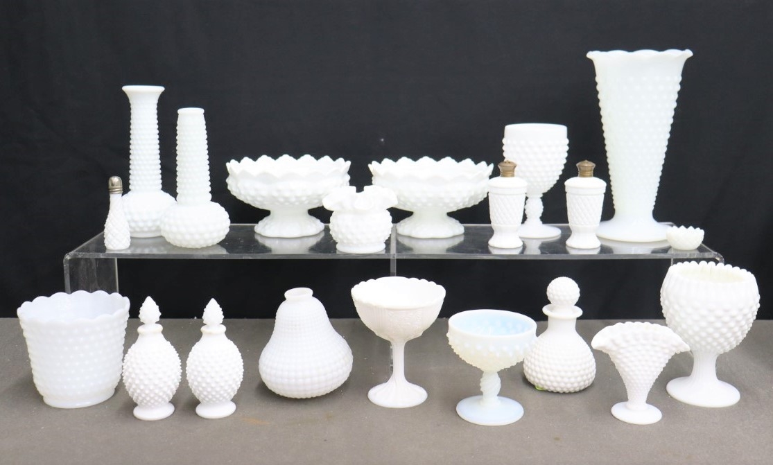 Generous Collection Of Hobnail Milk Glass Vessels, Vases, And Objects