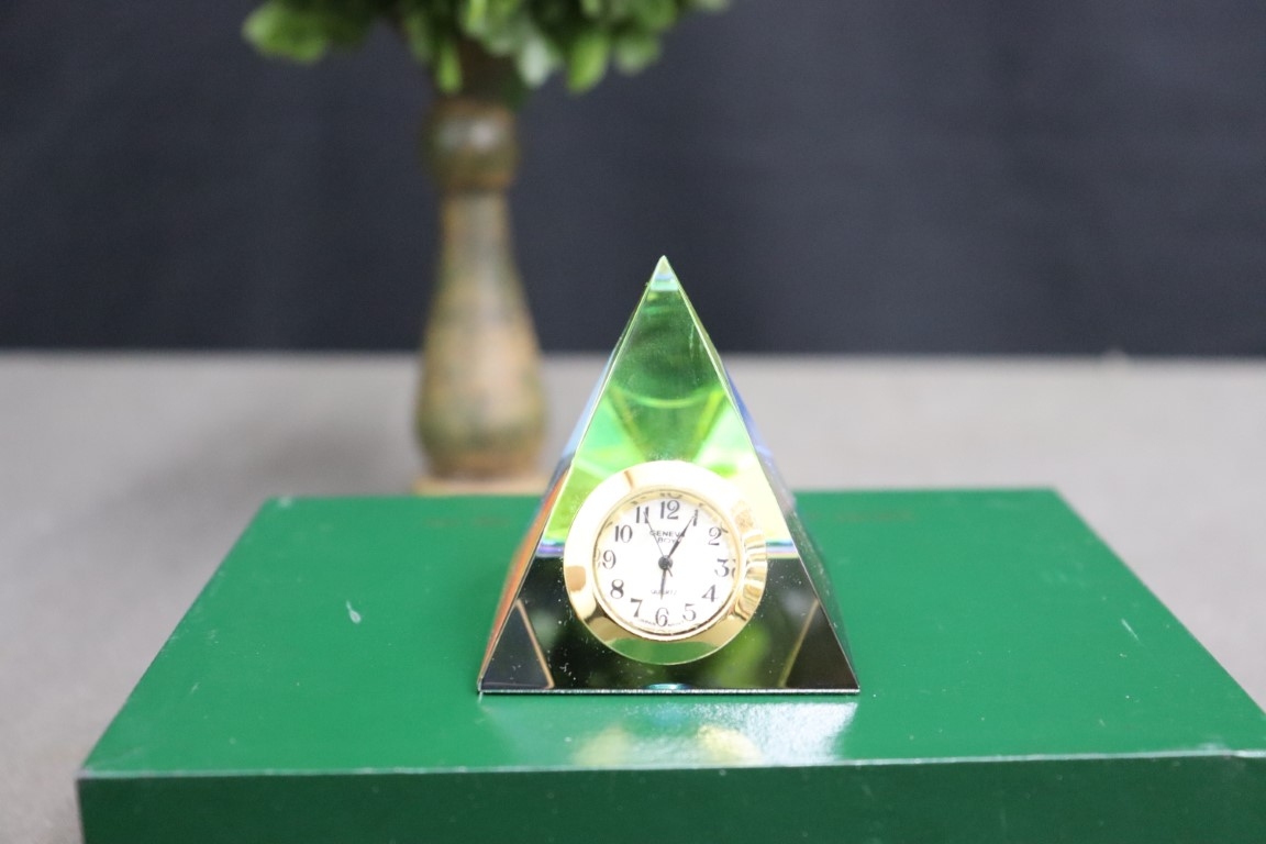 Geneva Boy Colored Crystal Pyramid Clock, With Original Box