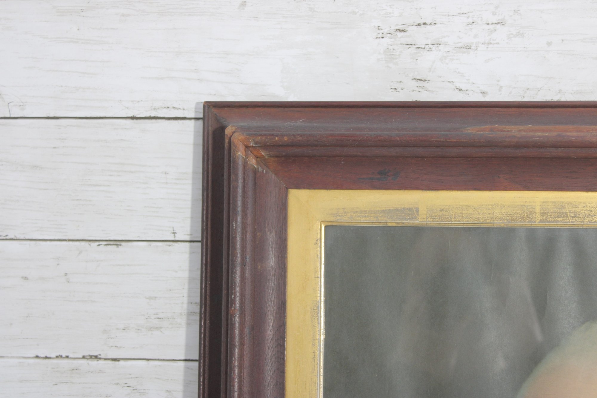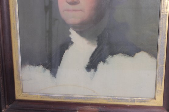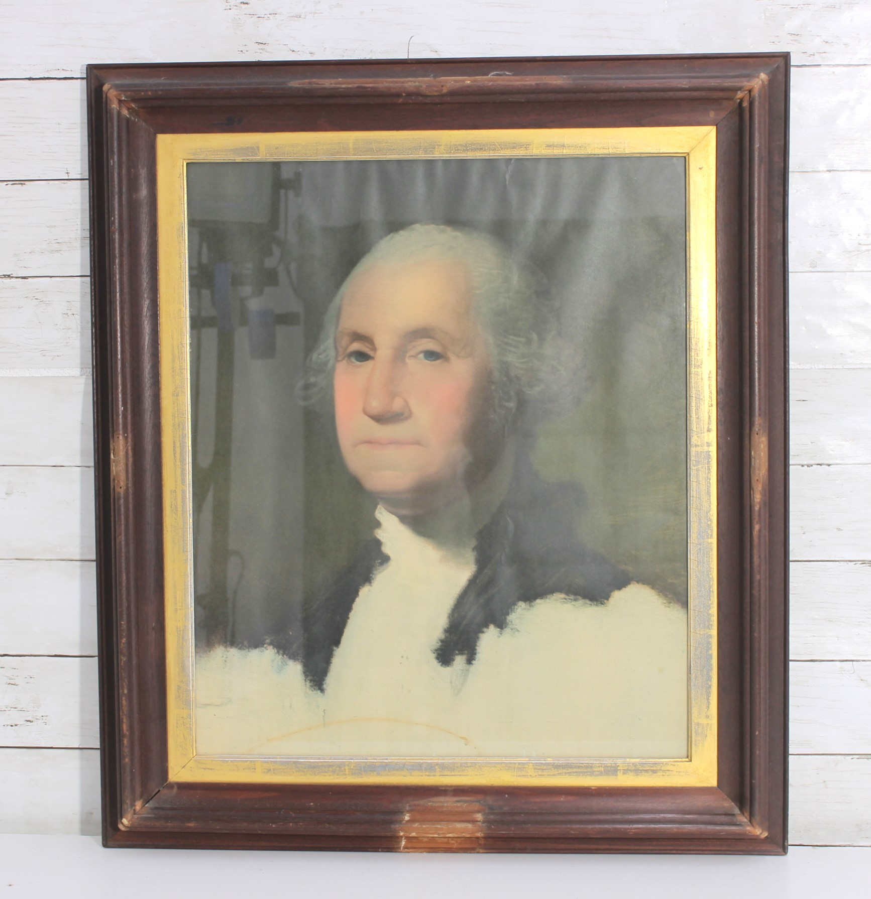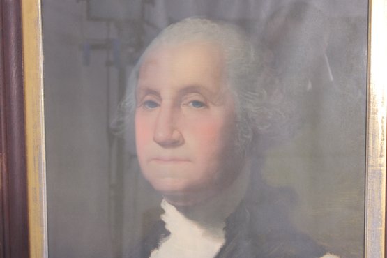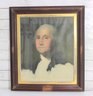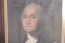 Framed portrait print of George Washington, the first President of the United States, presented in a classic historical style. The artwork depicts Washington in formal attire with a composed expression, rendered in soft muted tones that give the piece a traditional and distinguished appearance.