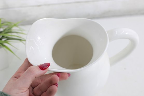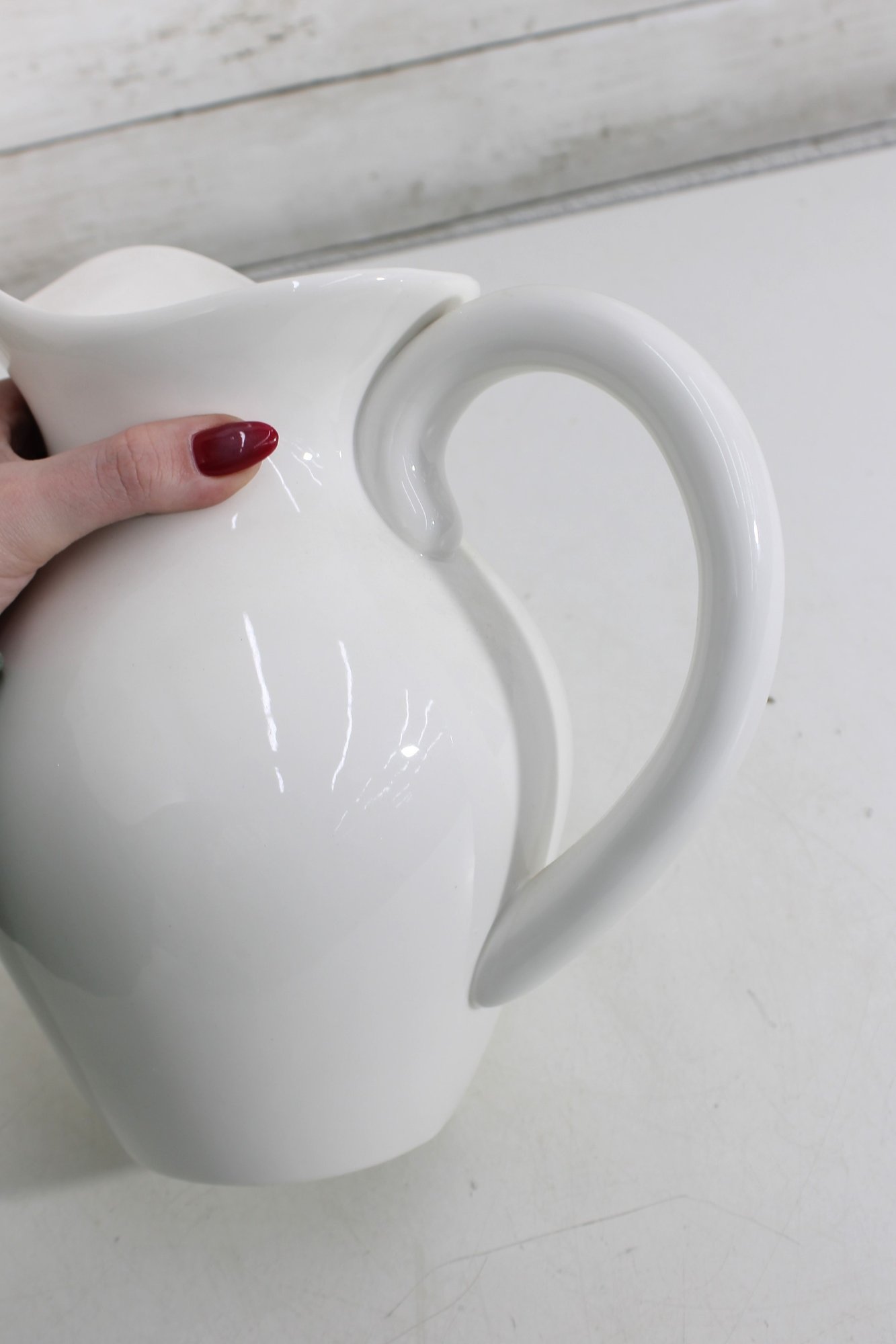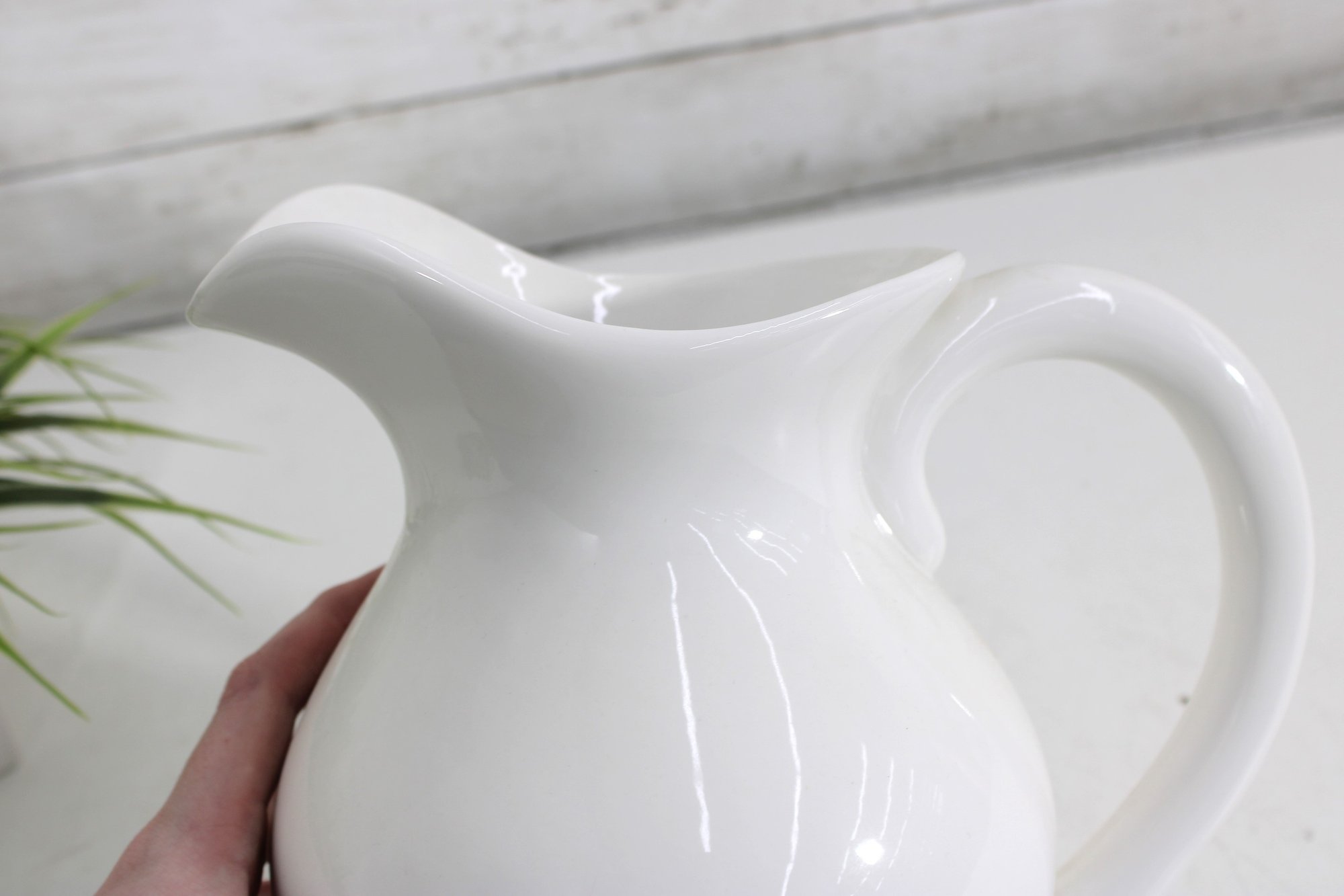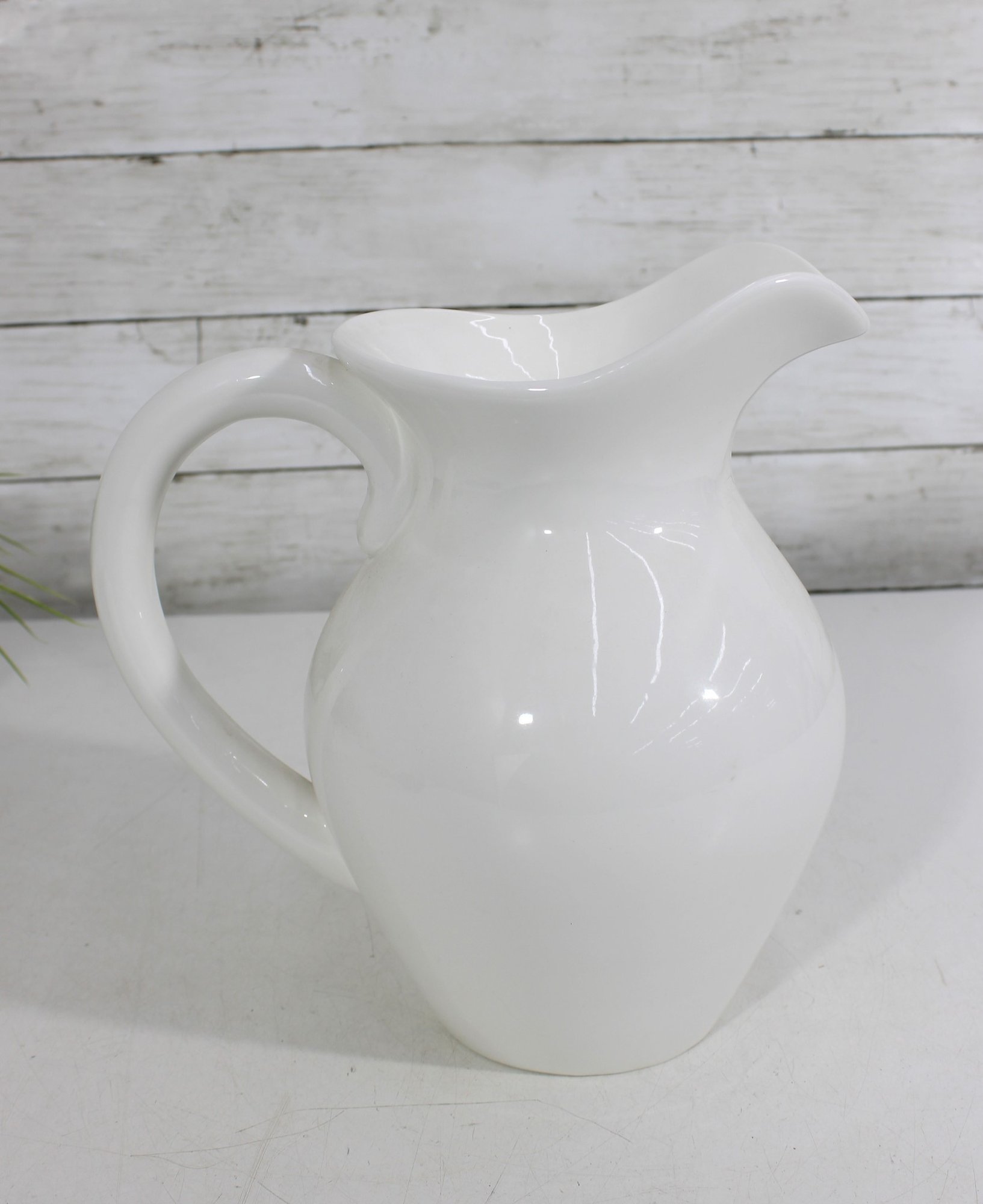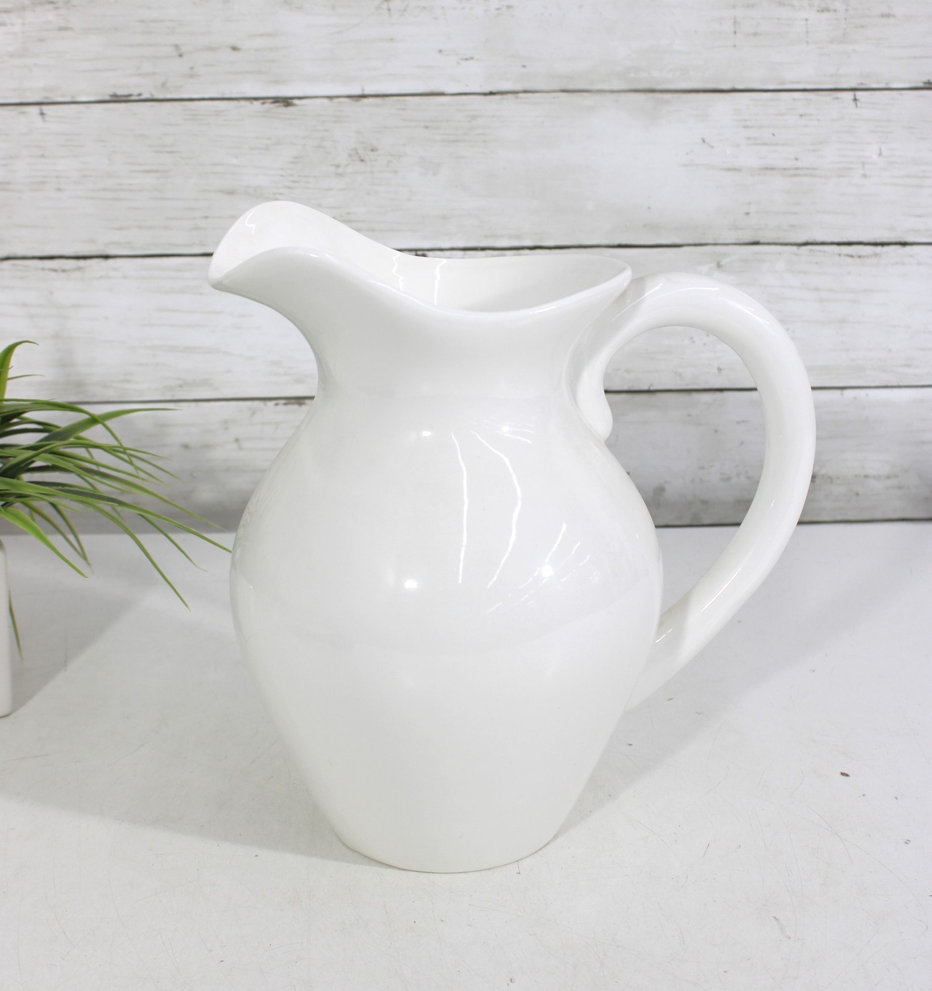 Perfect for serving water, juice, or as a decorative vase, this pitcher complements a wide range of styles from contemporary to farmhouse décor. Its neutral white color makes it easy to pair with any table setting.