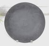 The finish has a raku-style appearance with a textured, almost cosmic effect, giving the plate a dynamic and contemporary artistic presence. The abstract design elements add contrast and visual intrigue, making it an eye-catching display piece.