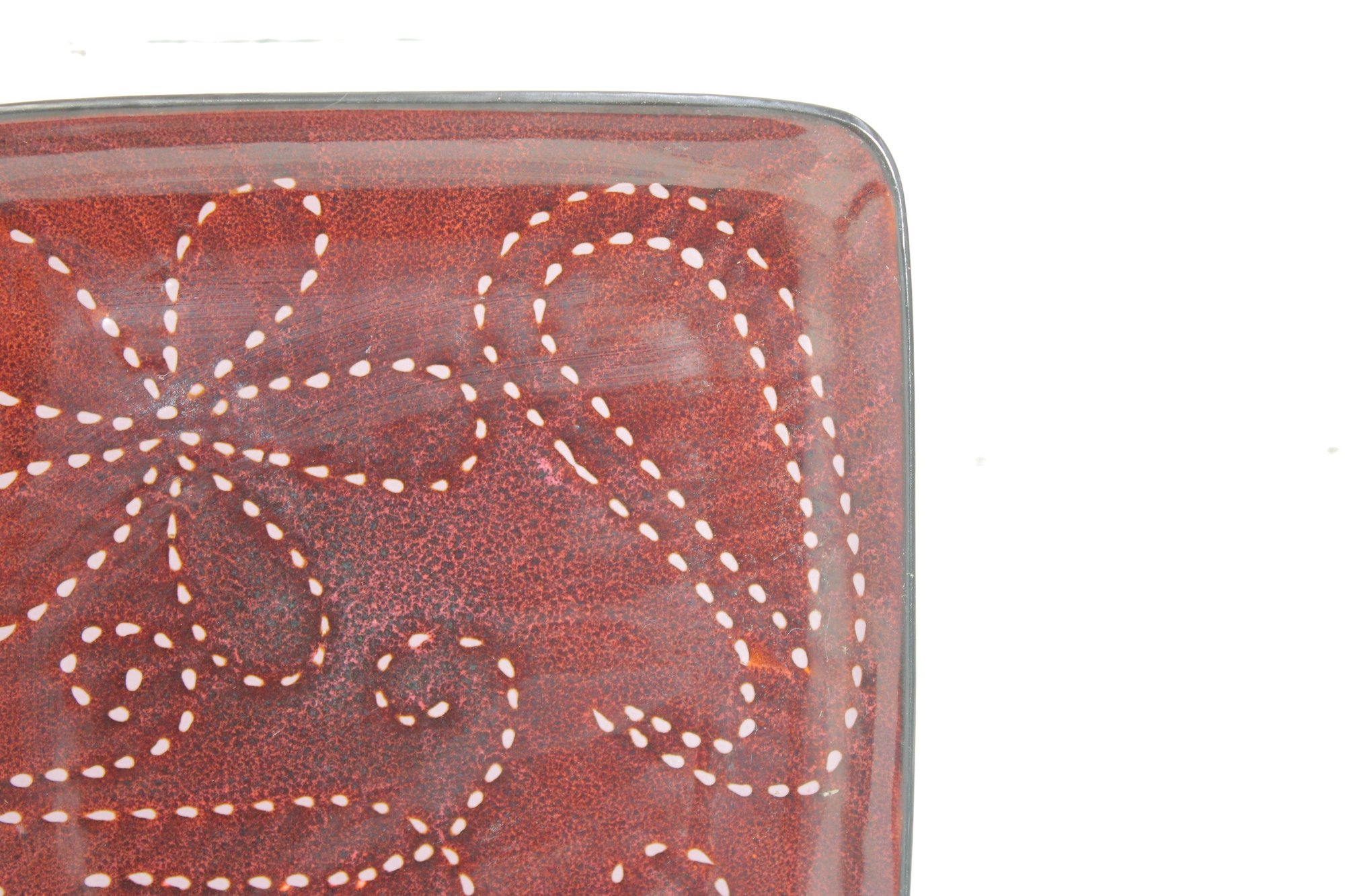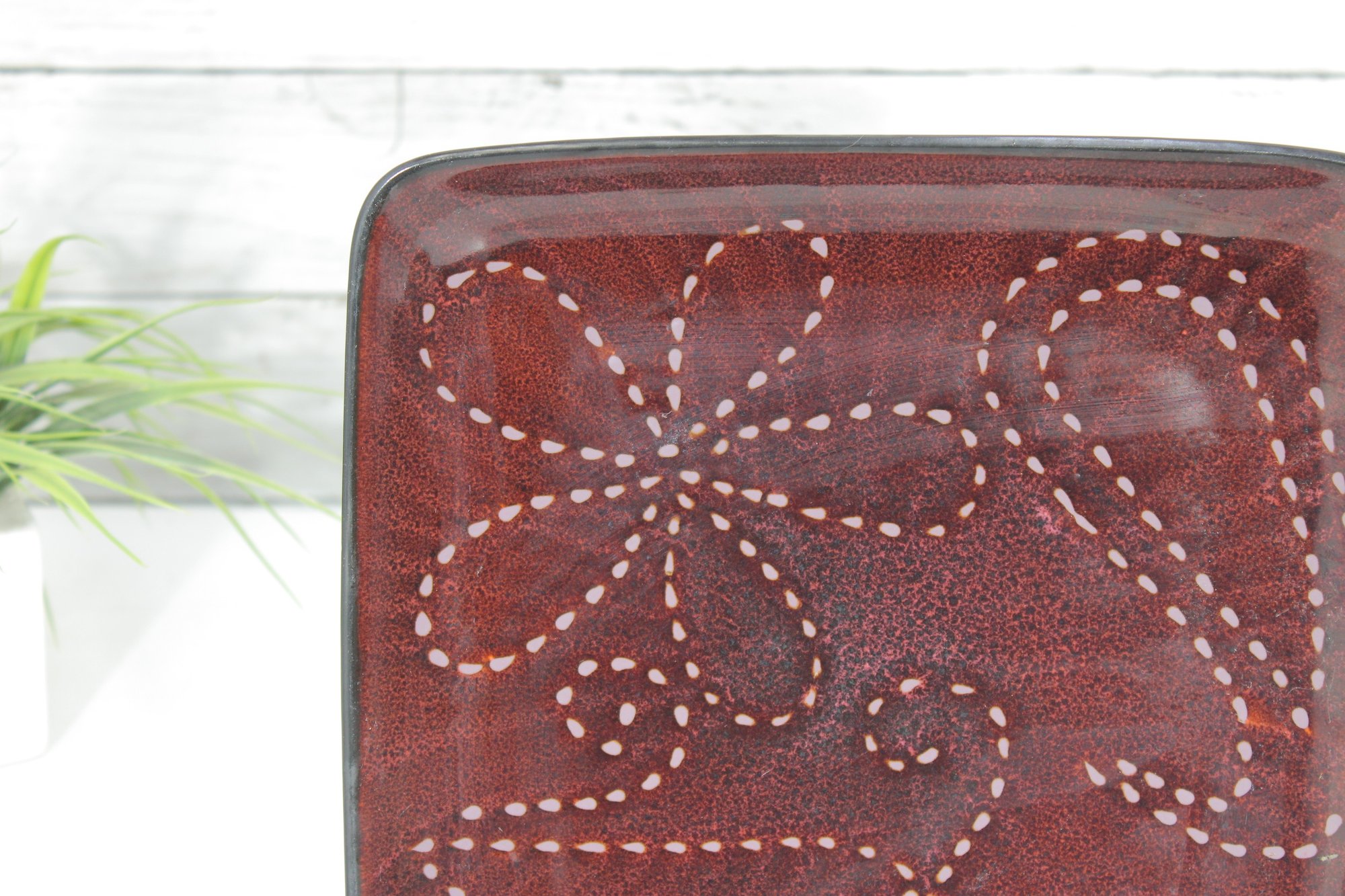 Pier 1 Imports 10" X 10" Square Red Floral Decorative Plate Hand Painted Style