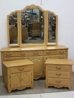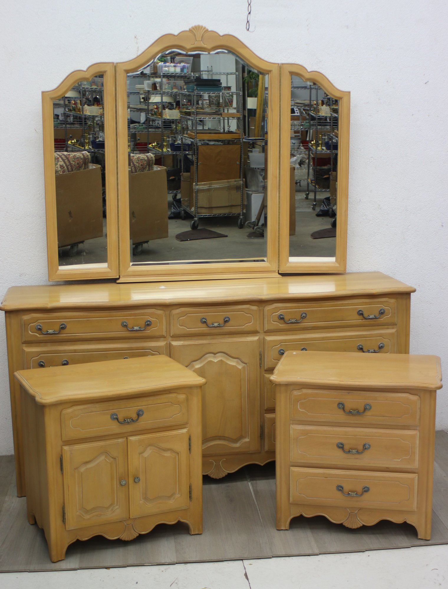 note: nightstands are 25"L X 17"D X 25"H; dresser is 72"L X 34.5"H; mirror is 45.5"H