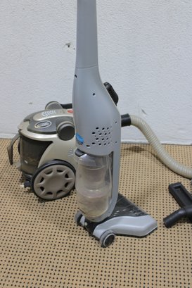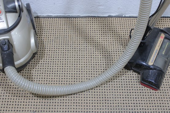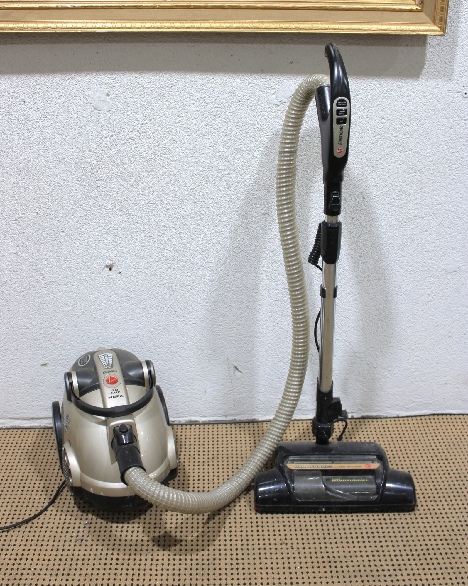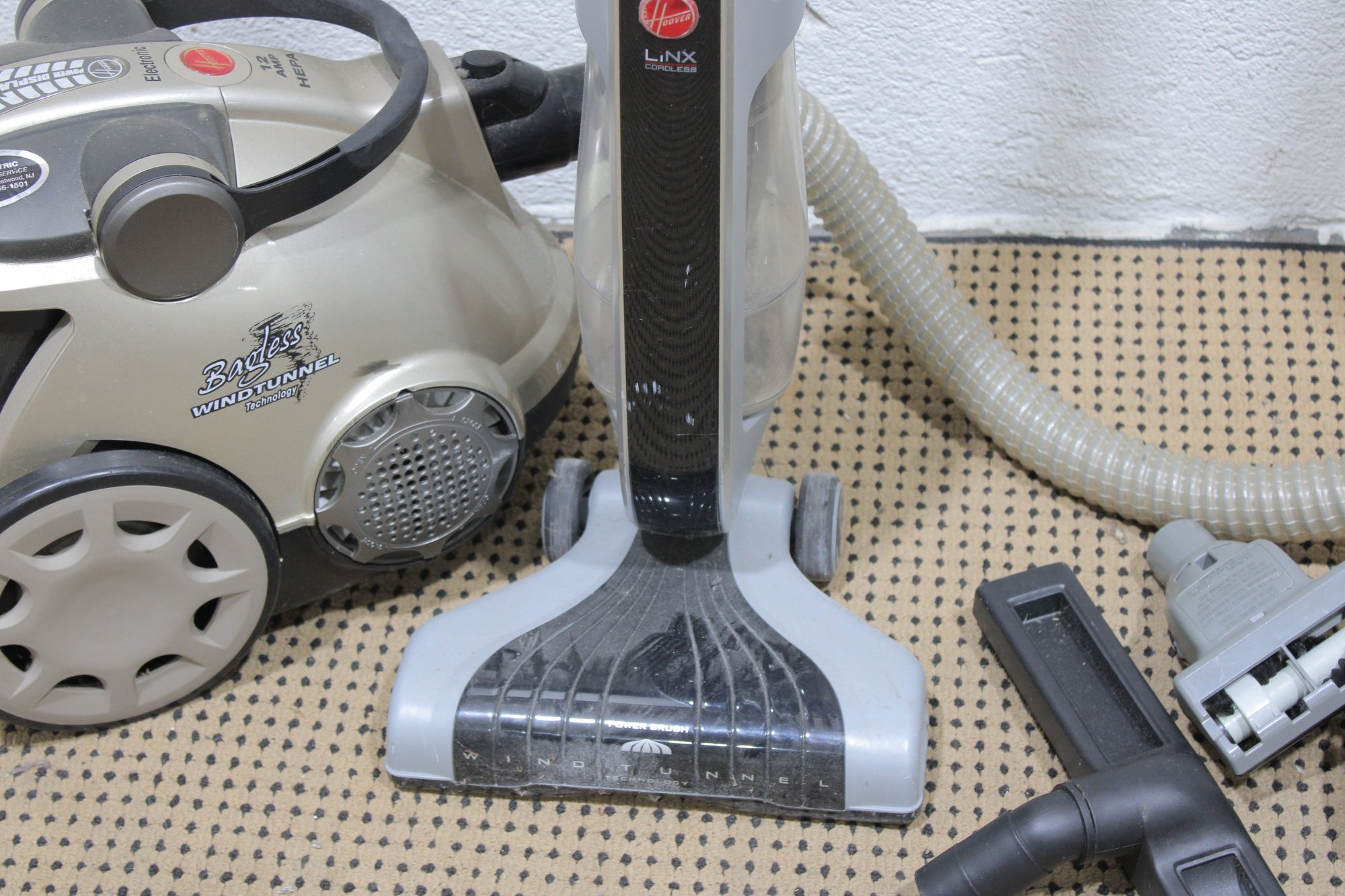 The Eureka canister unit features a 12-amp motor and HEPA filtration design, paired with hose, power head, and accessories for versatile cleaning. The Hoover LINX lightweight stick vacuum offers convenient upright use for quick floor maintenance.
